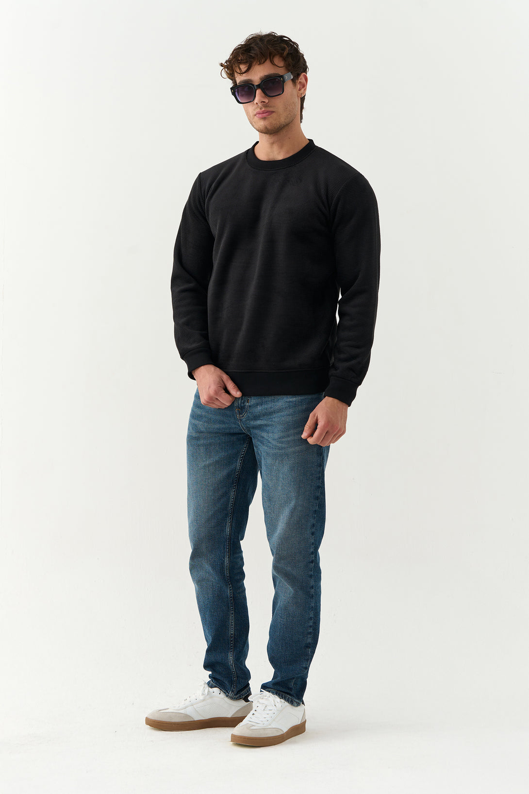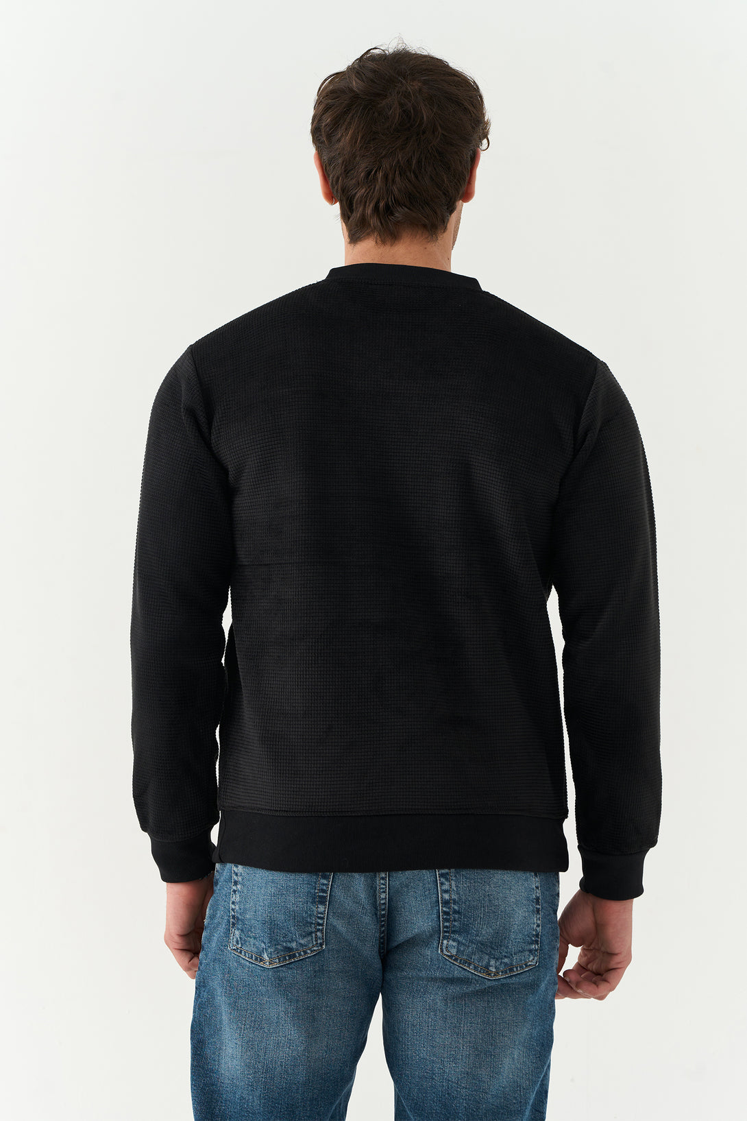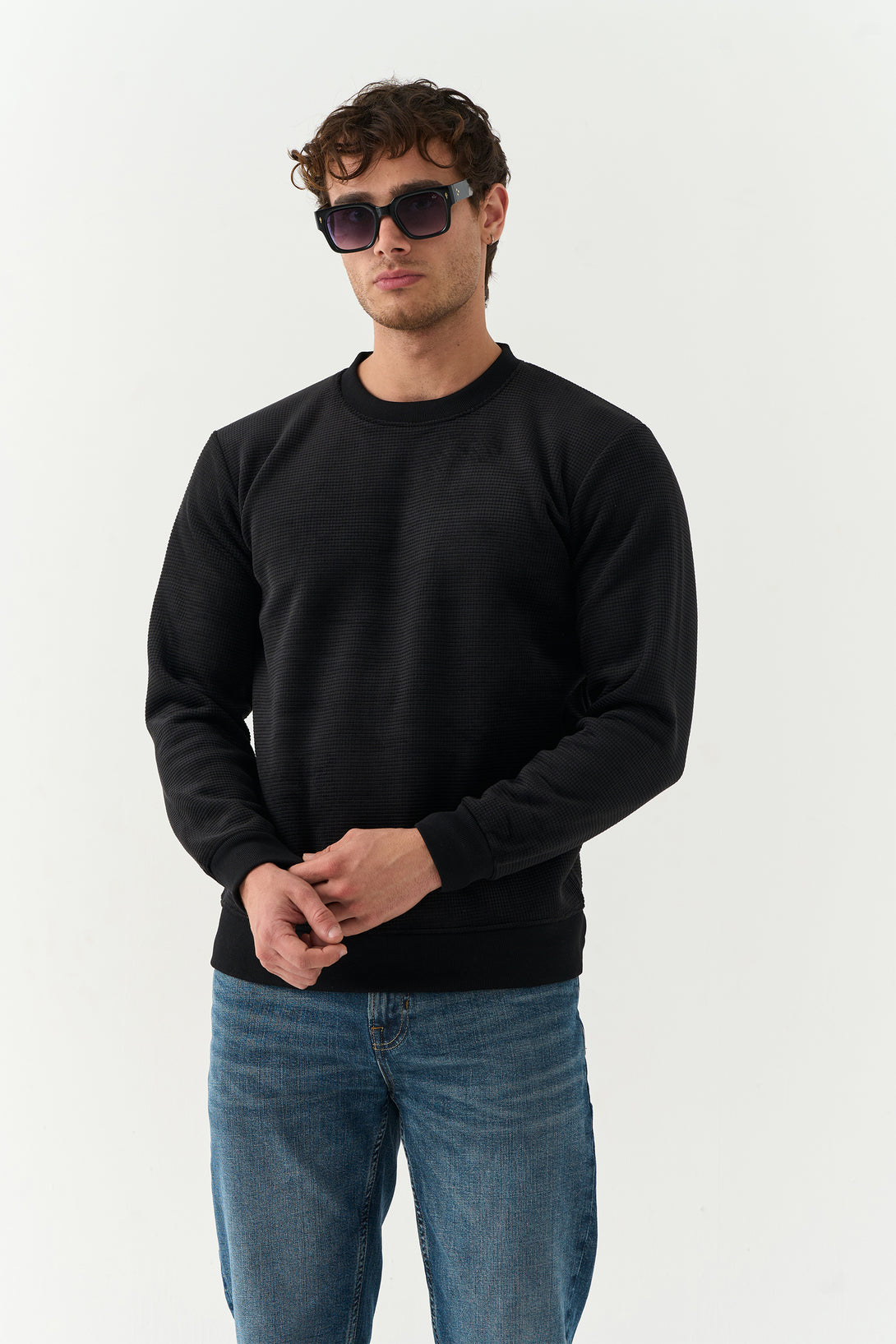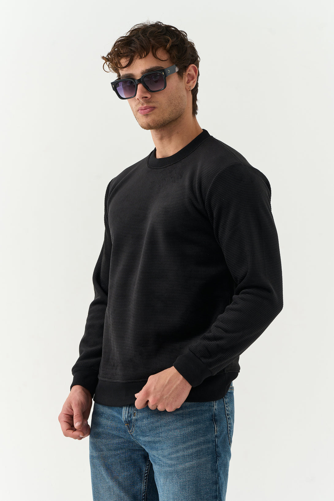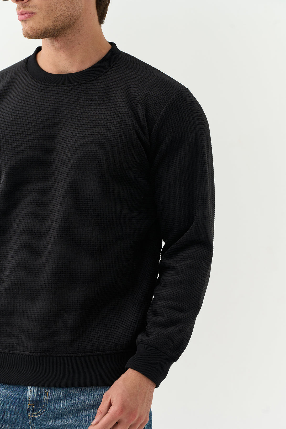 Classic and contemporary, the Black Thermal Knit Textured Sweatshirt delivers an effortlessly sleek aesthetic. The premium knit texture enhances depth while providing all-day warmth and comfort.