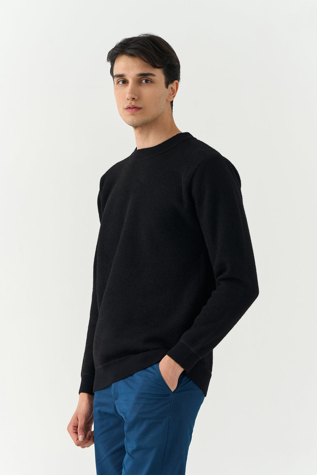 Refined and versatile, the Black Thermal Knitted Sweatshirt combines a modern silhouette with functional warmth. Its clean design makes it a must-have layering essential.