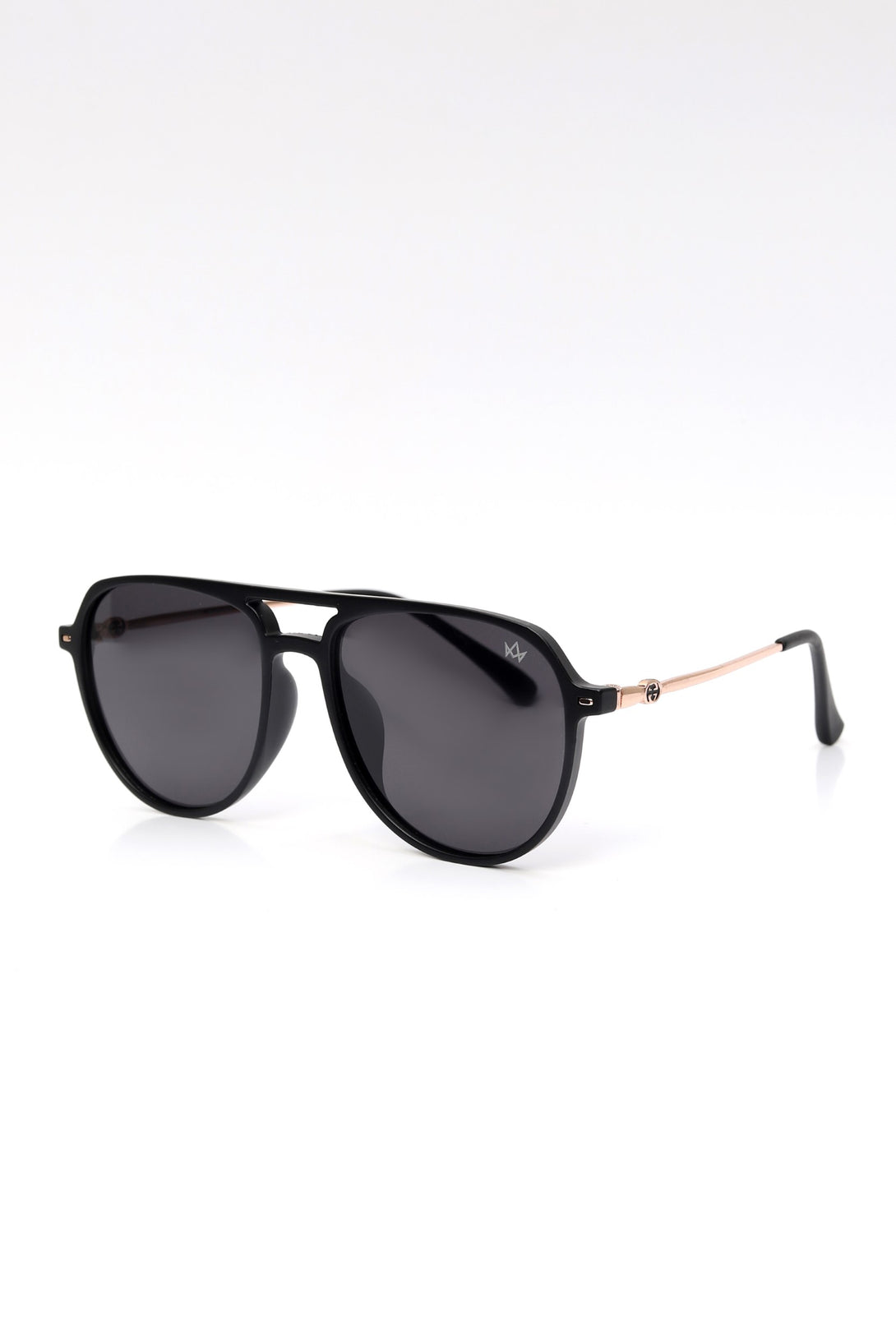Men's fashion sunglasses features polarized lens includes a protective case embossed with a brand emblem.