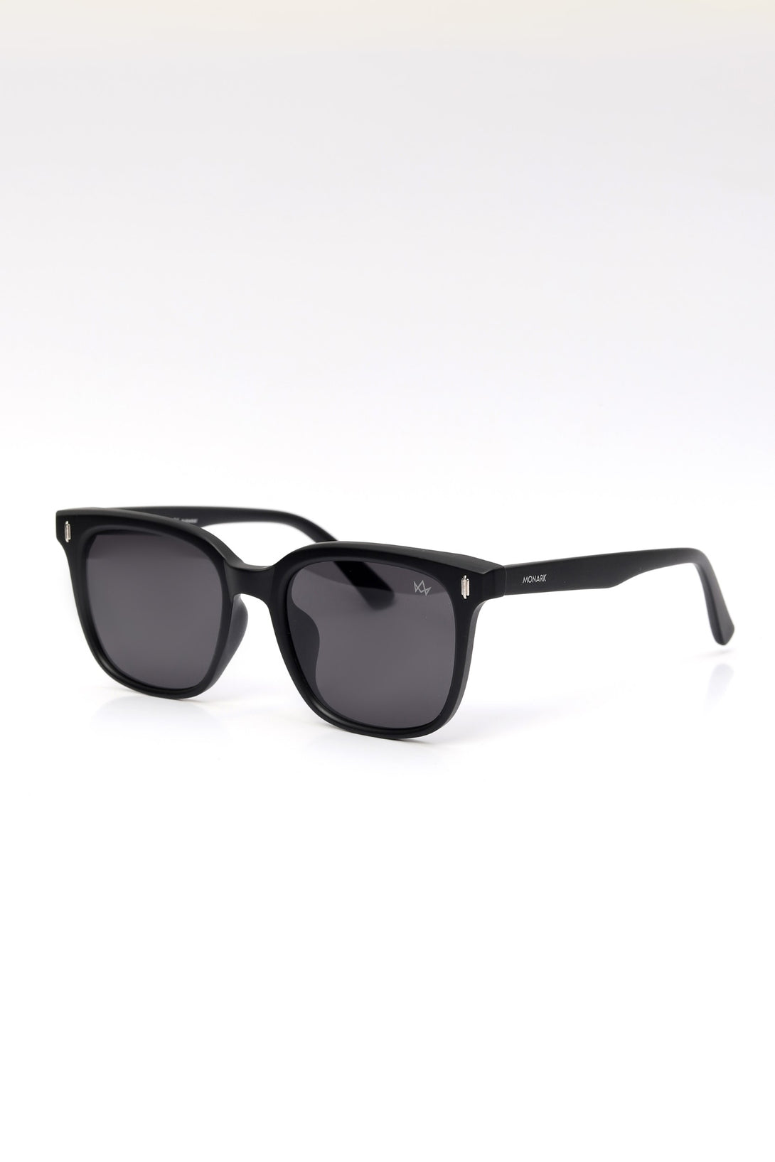 Men's fashion sunglasses features polarized lens includes a protective case embossed with a brand emblem.
