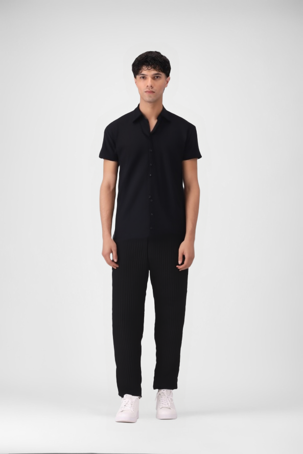 Stay stylish and cool with this full length cord set, featuring a corset-style waist for a flattering fit. Made from lightweight, breathable fabric in a refreshing black shade, it's perfect for casual outings and summer days. Effortless style, all-day comfort!