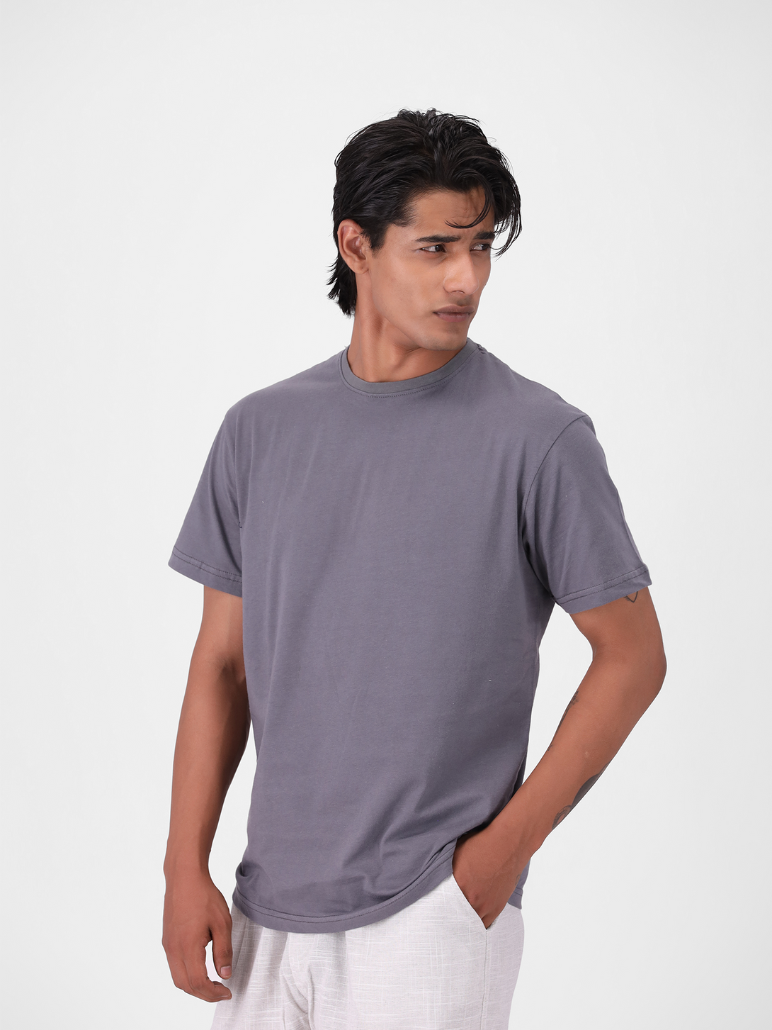 Simple yet versatile, this grey tee is crafted from breathable fabric, making it a must-have for relaxed summer nights.