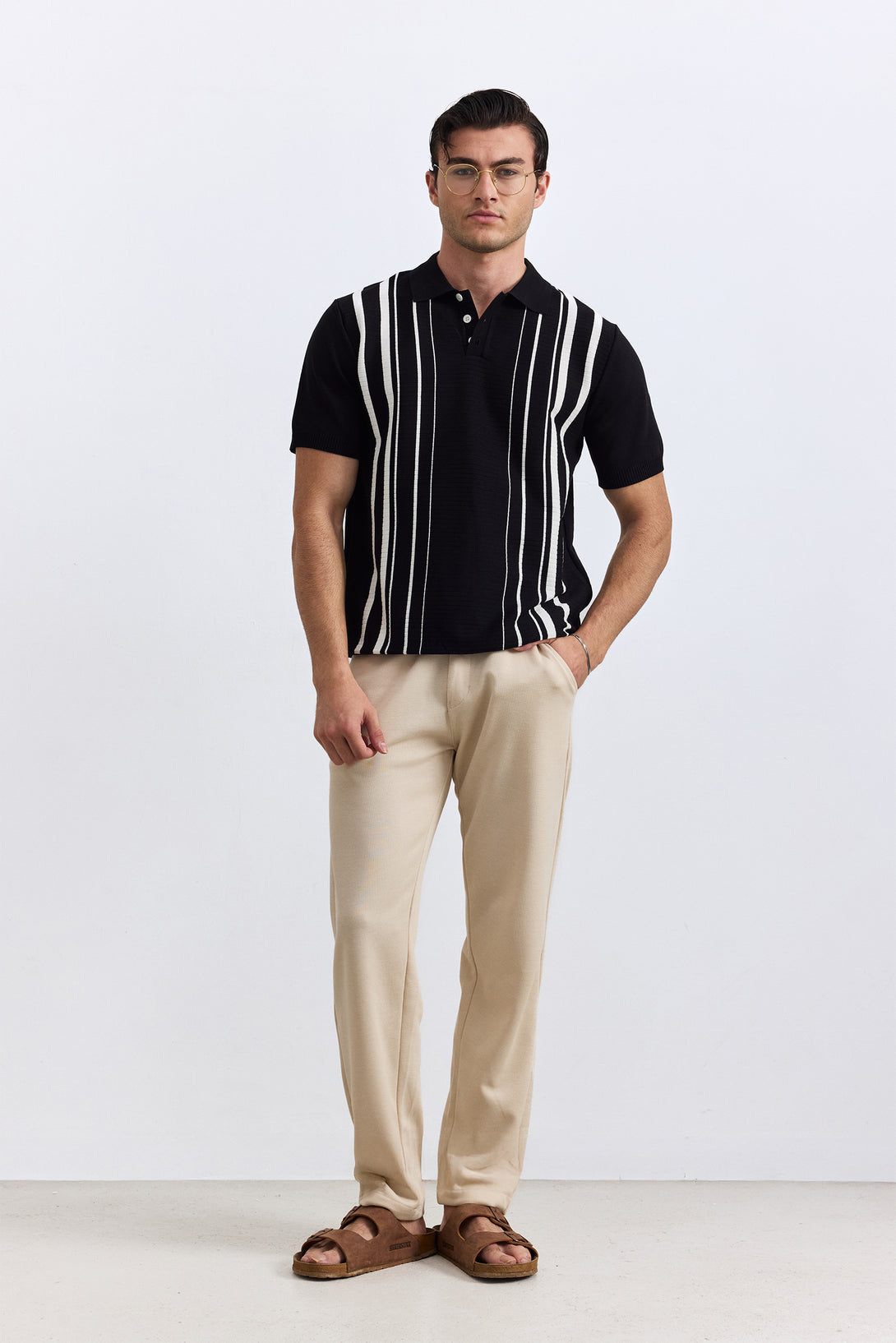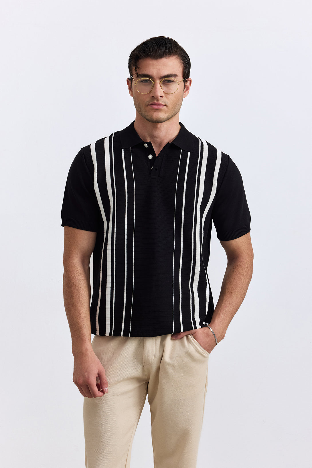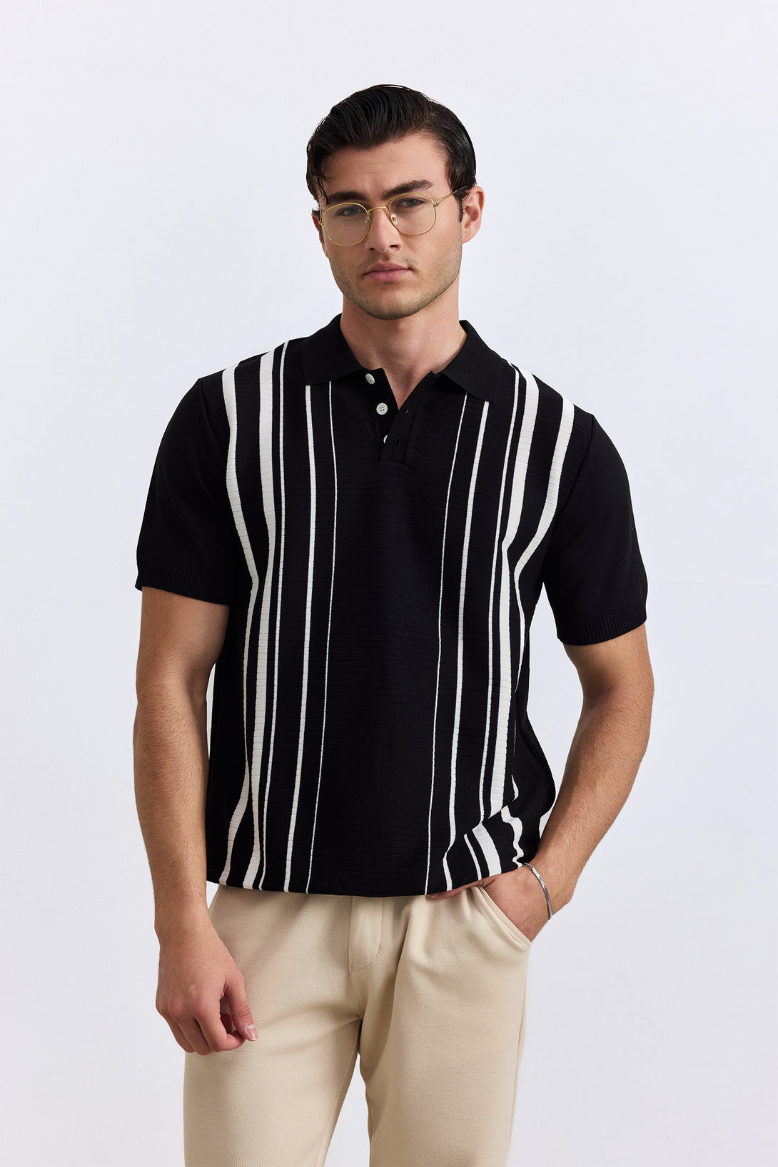 Crafted from premium knitted fabric, this timeless black polo delivers effortless style.