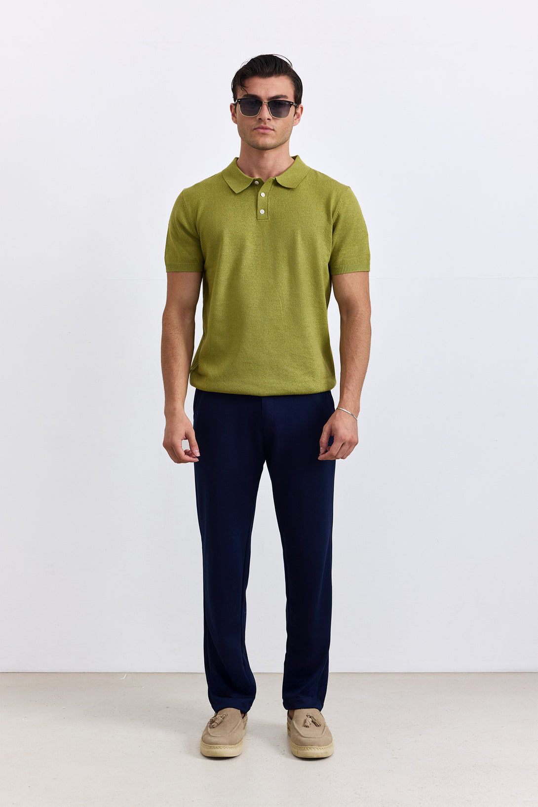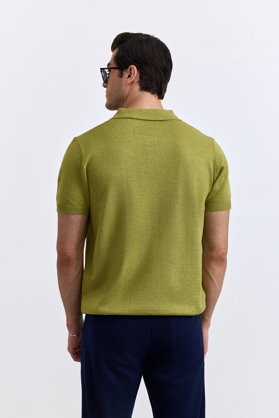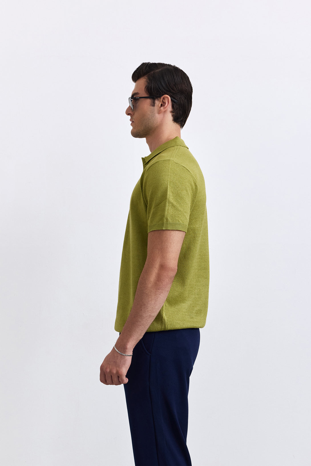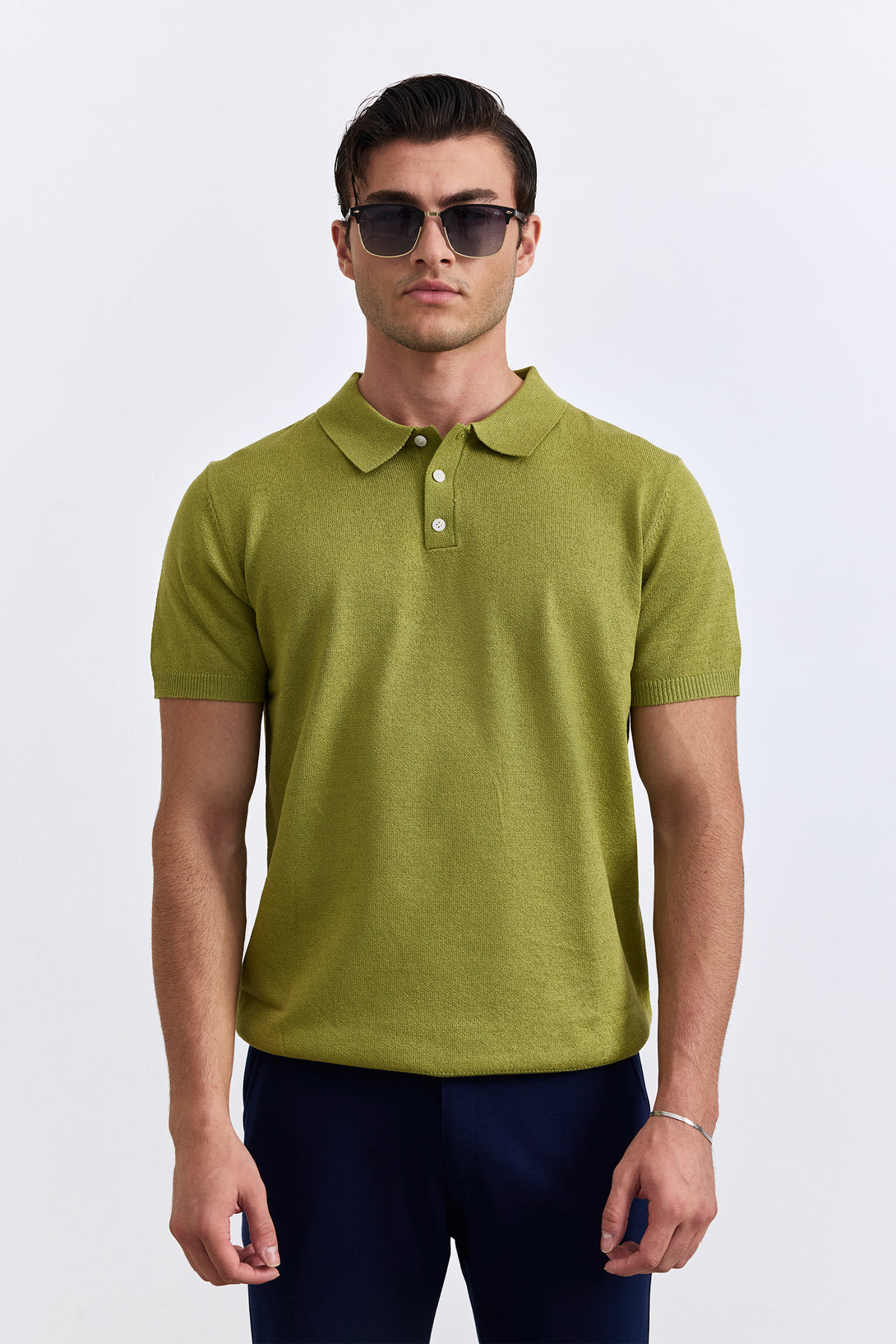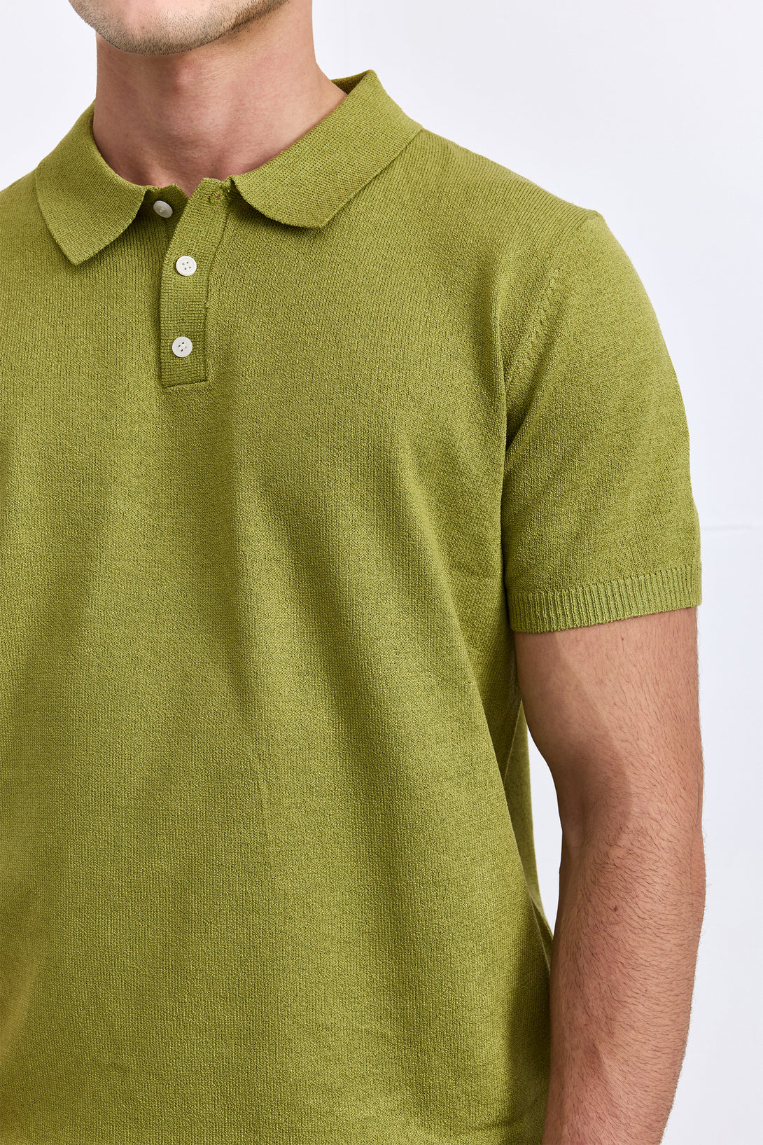 Designed in breathable knit, this fresh green polo stands out with vibrant appeal.