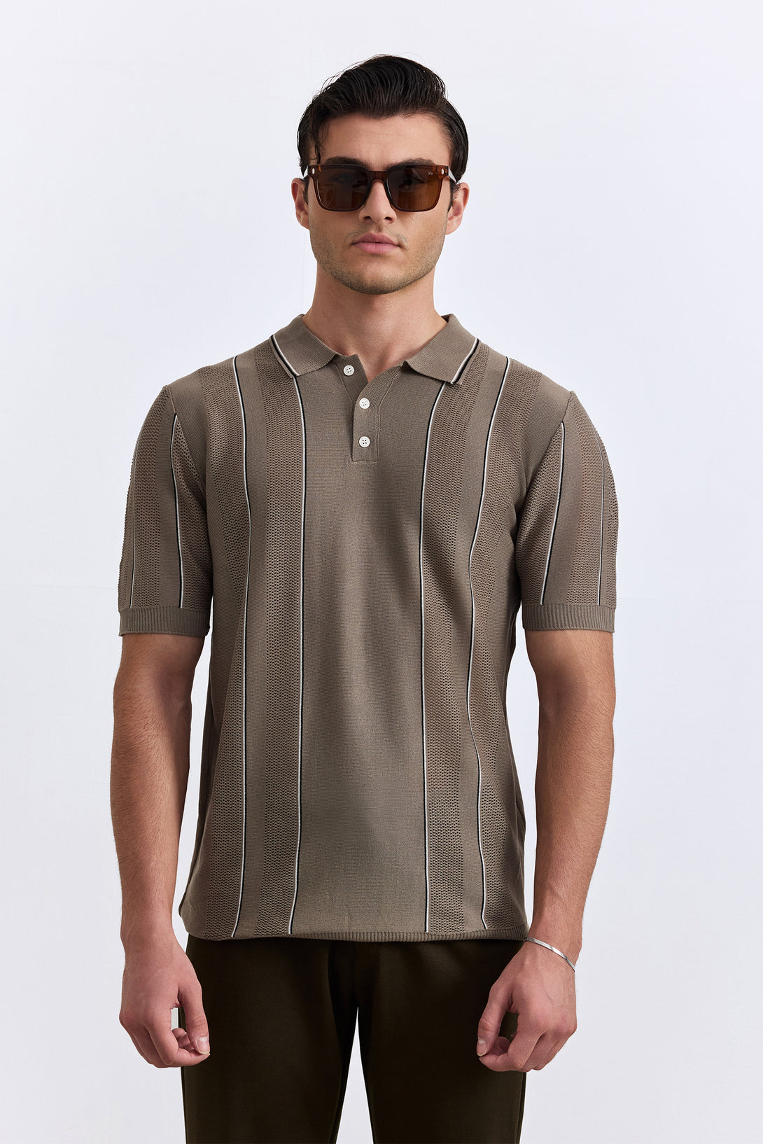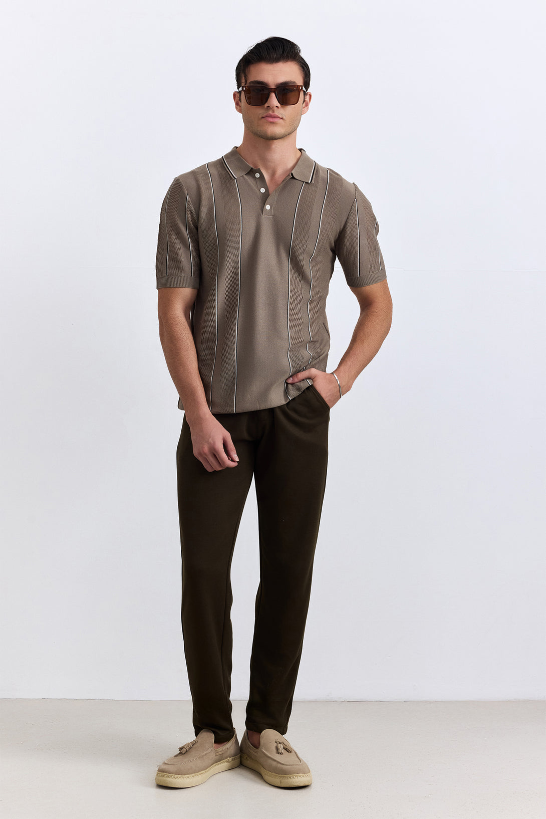 A versatile brown polo in smooth knitted fabric for easy styling.