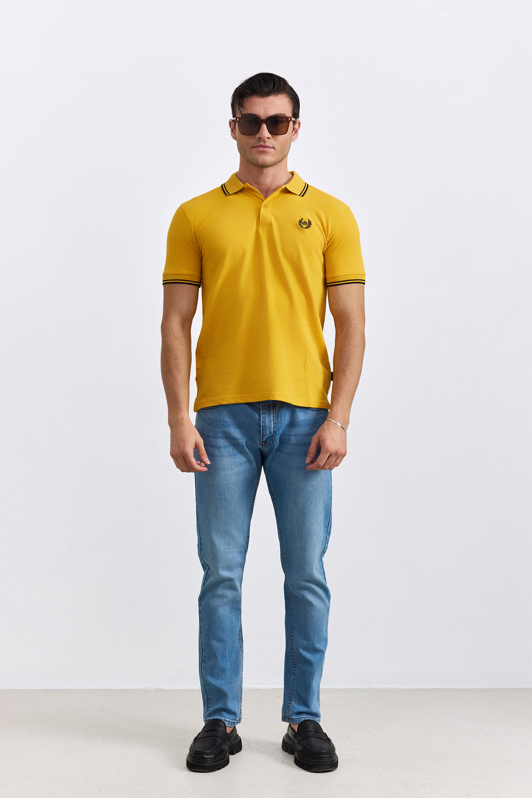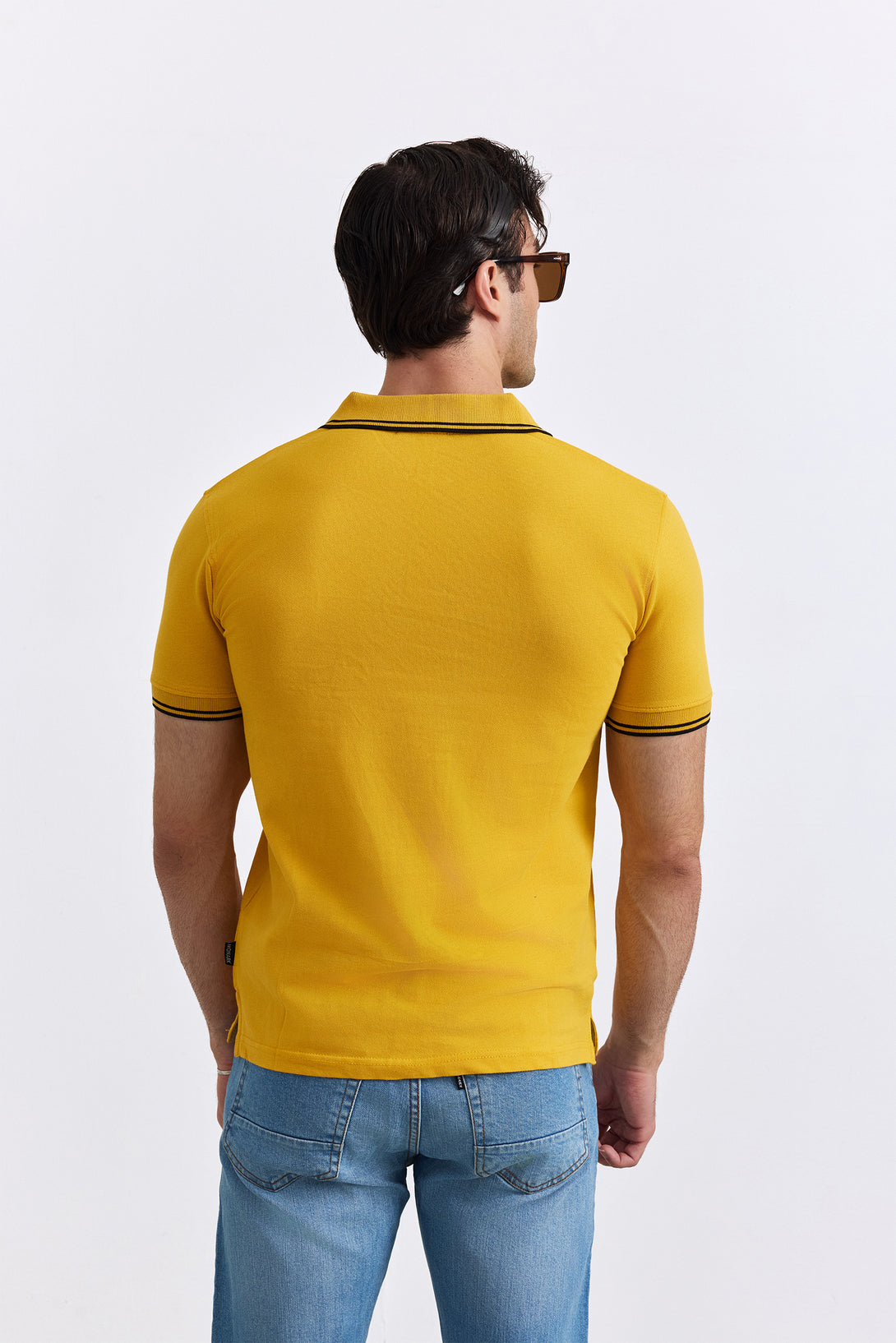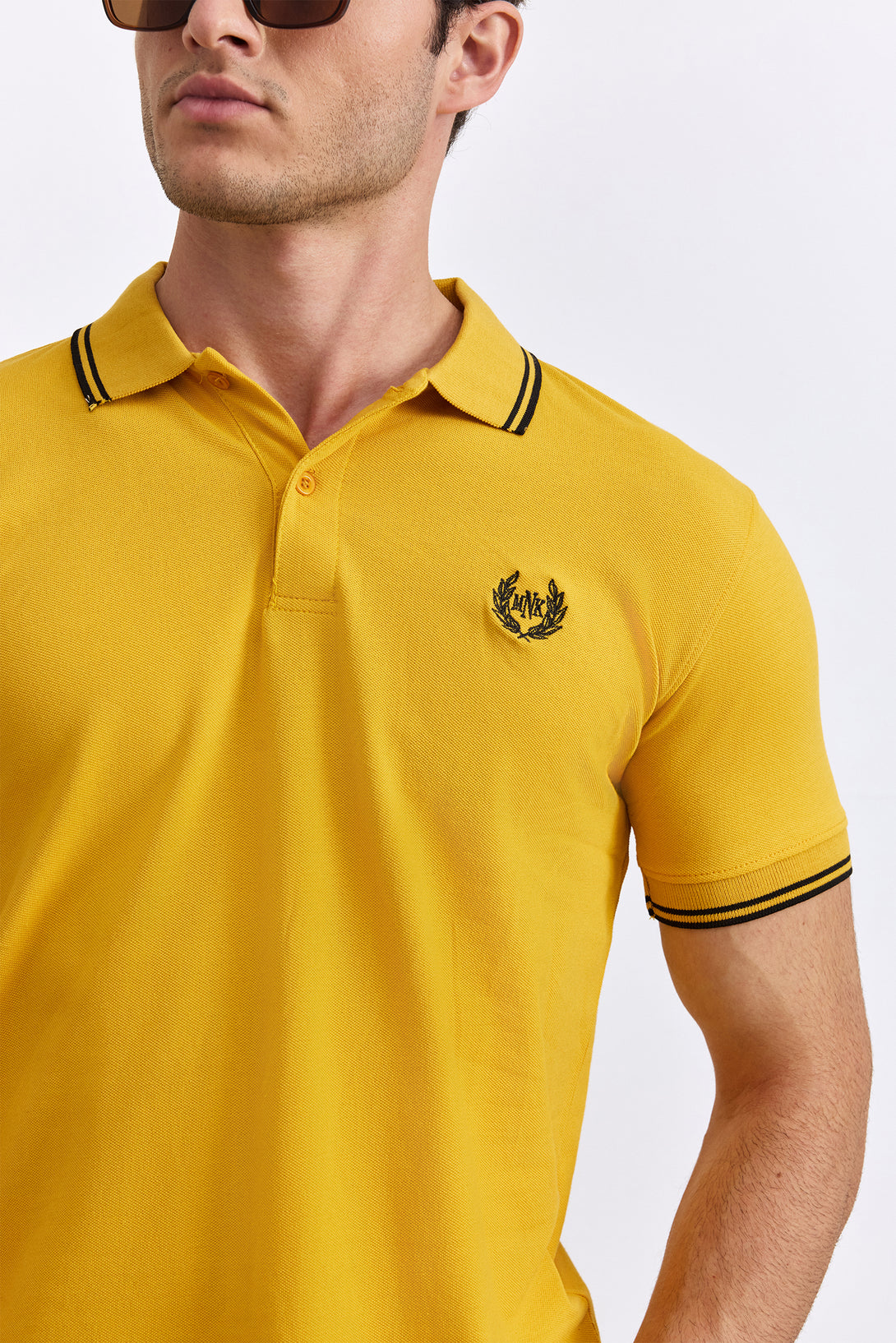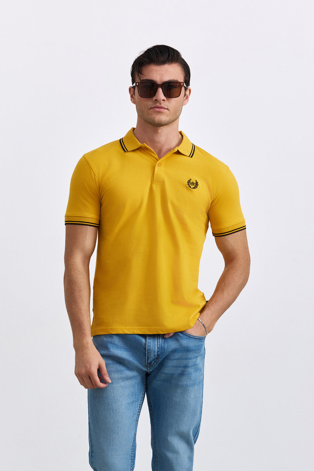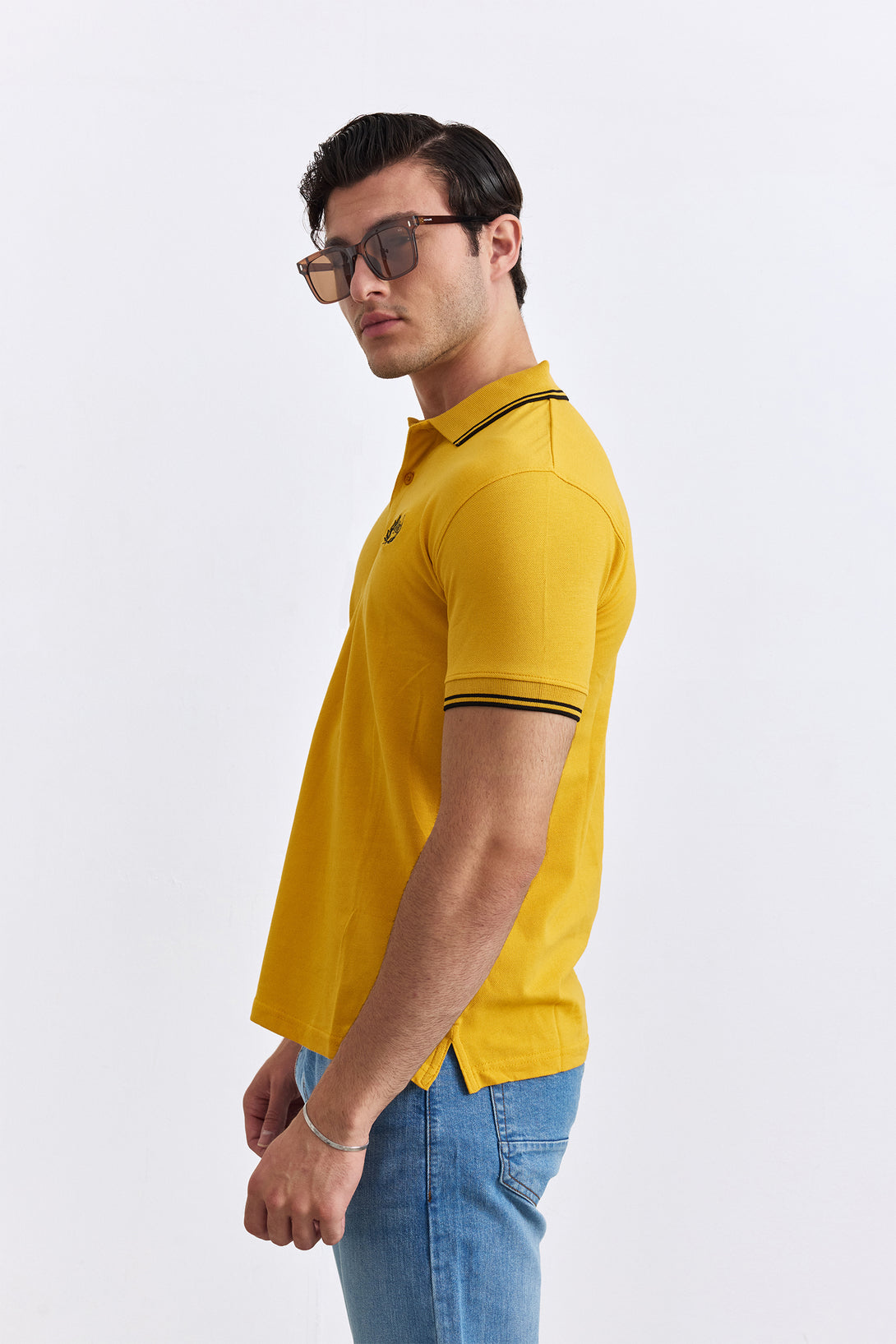 Smooth knit in a warm Mustard Yellow shade for a refined casual look.