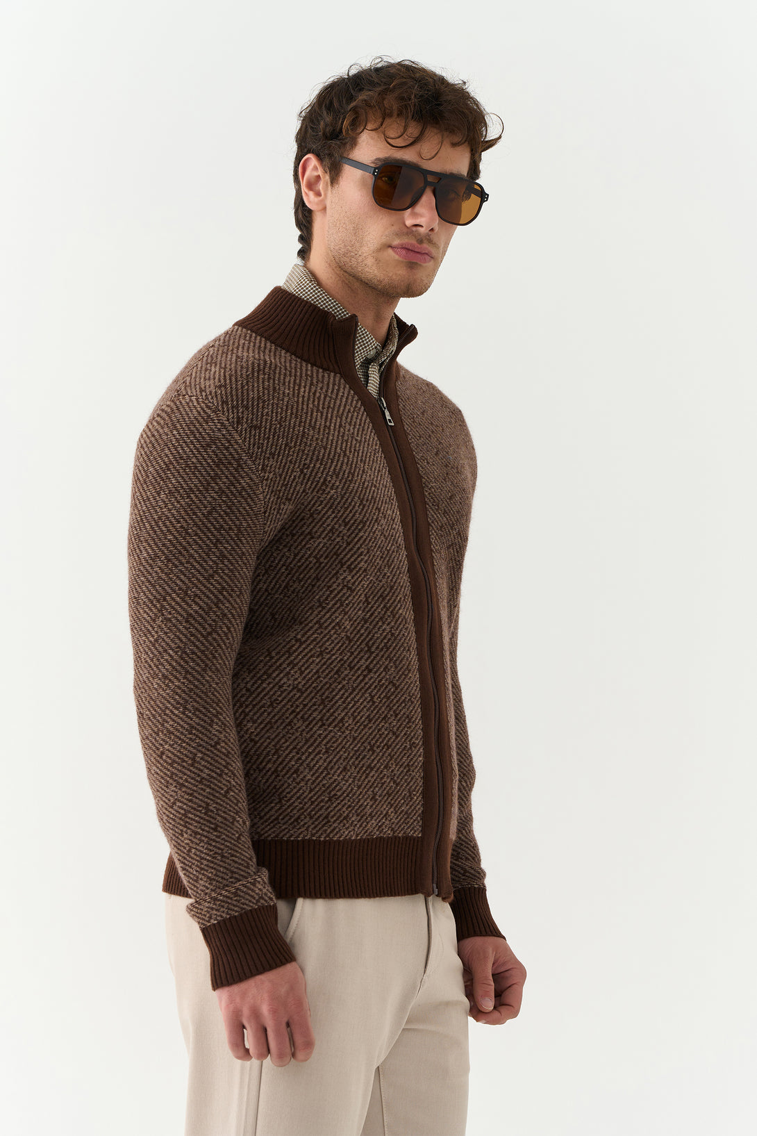 Stay warm in style with this Brown Knitted Woollen Zipper, crafted from soft, insulated wool-blend knit. Designed for everyday comfort, it features a sleek front zipper and ribbed detailing for a refined winter look.