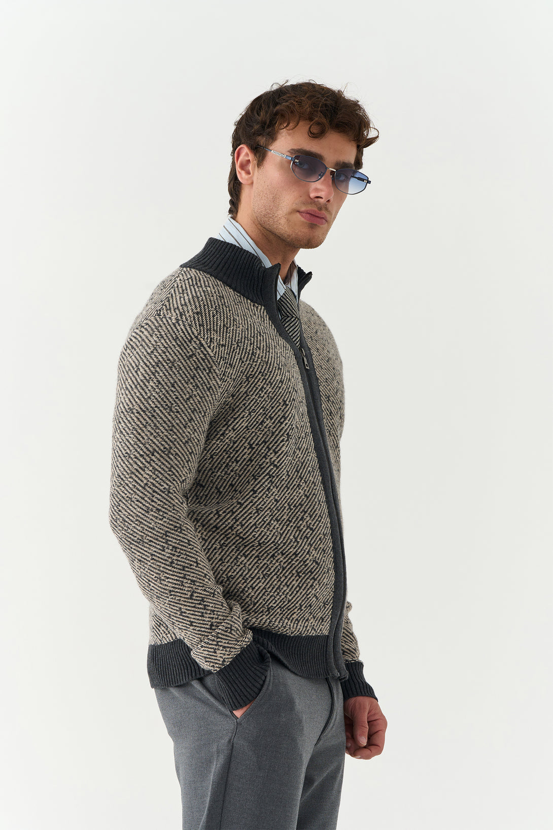 Grey Knitted Woollen Zipper