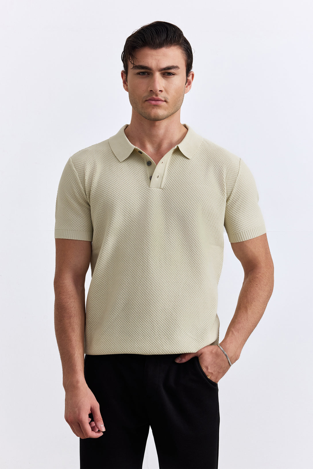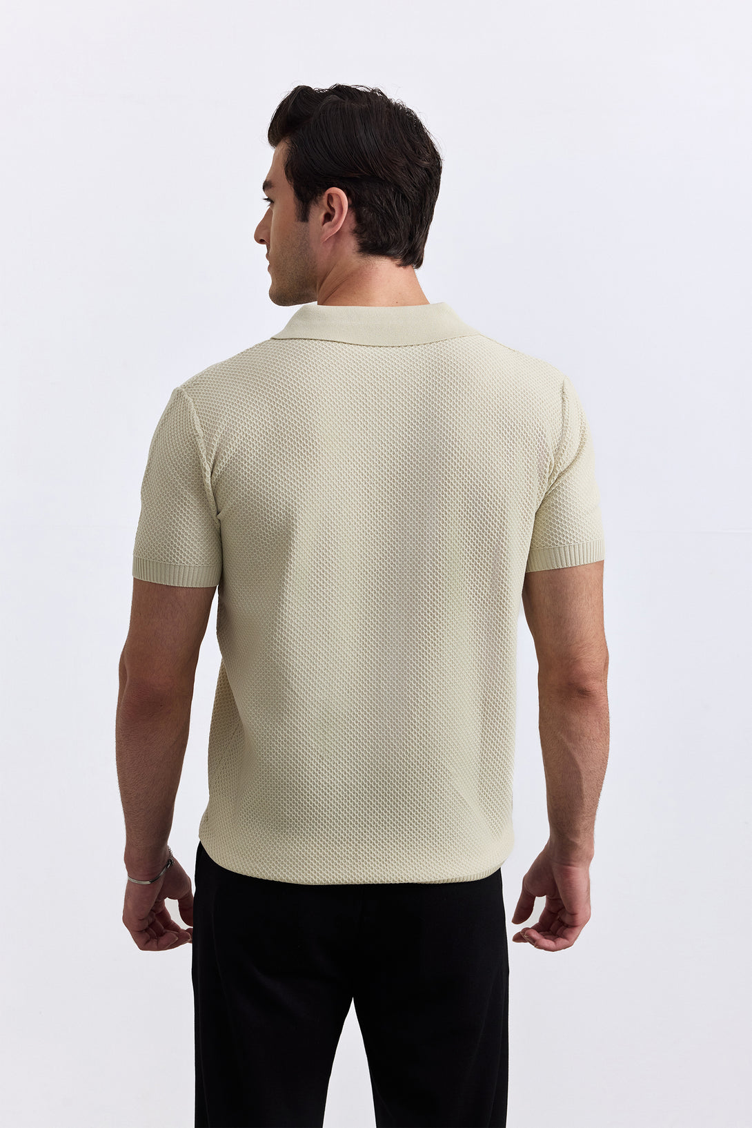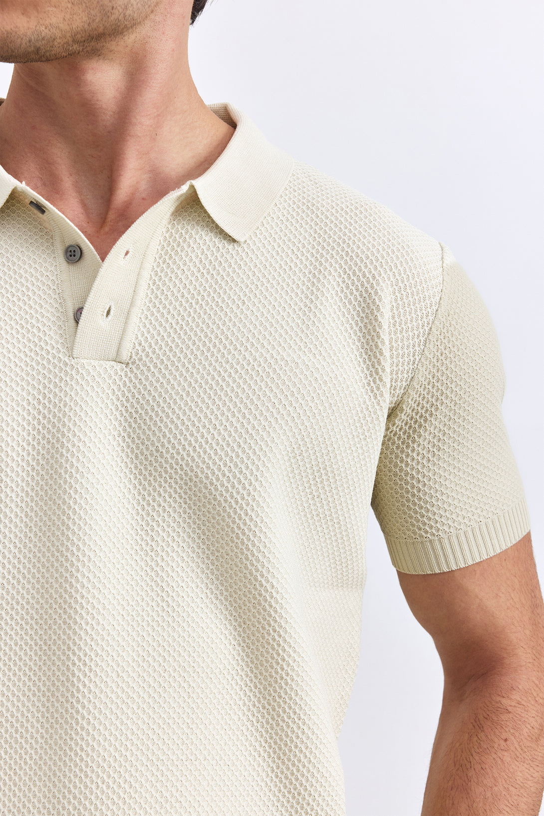 Minimal and refined in soft knit, this off-white polo is always in style.