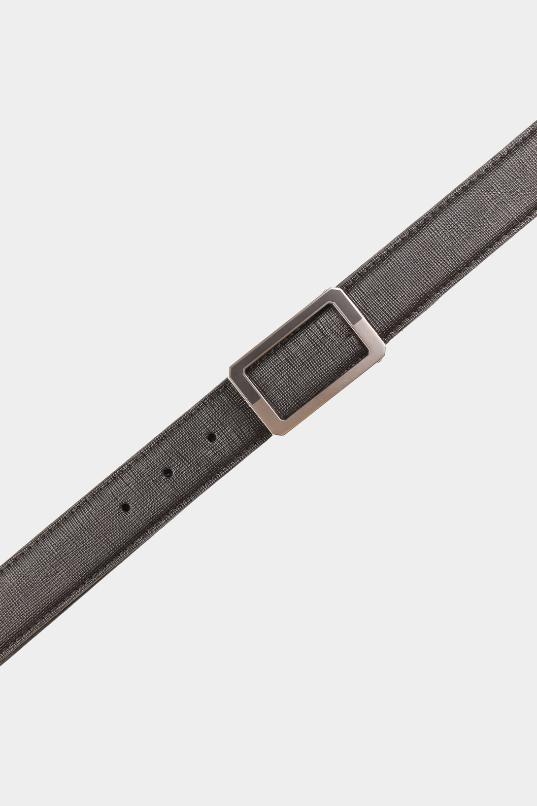 Designed for flexibility and sophistication, the Black Double-Sided Formal Belt offers two subtle tones of black for a refined, polished aesthetic. Crafted from genuine leather, it’s a staple for men who value versatility and understated style. With one side is textured and the other is plain.