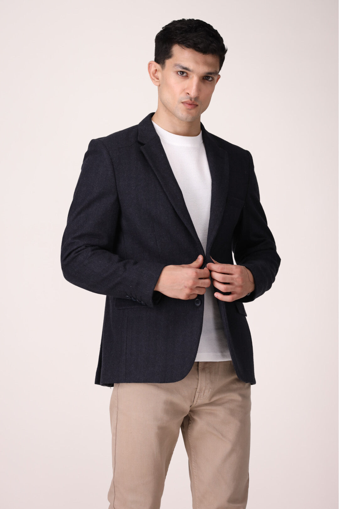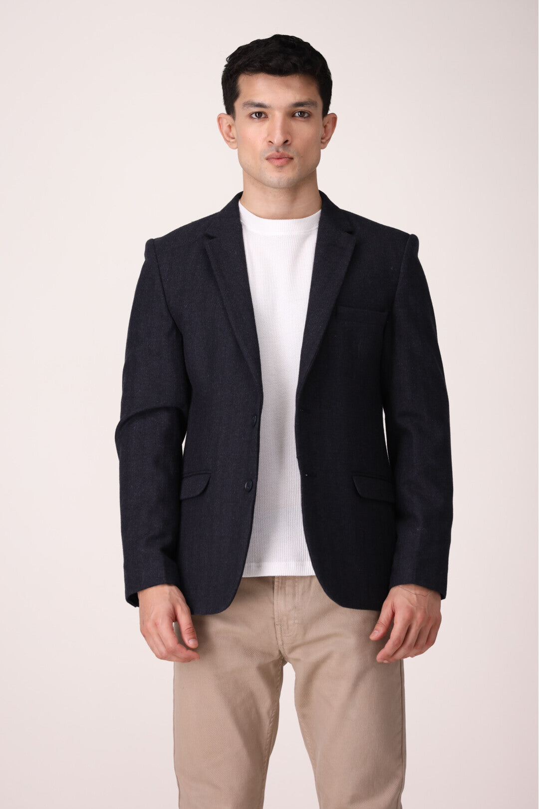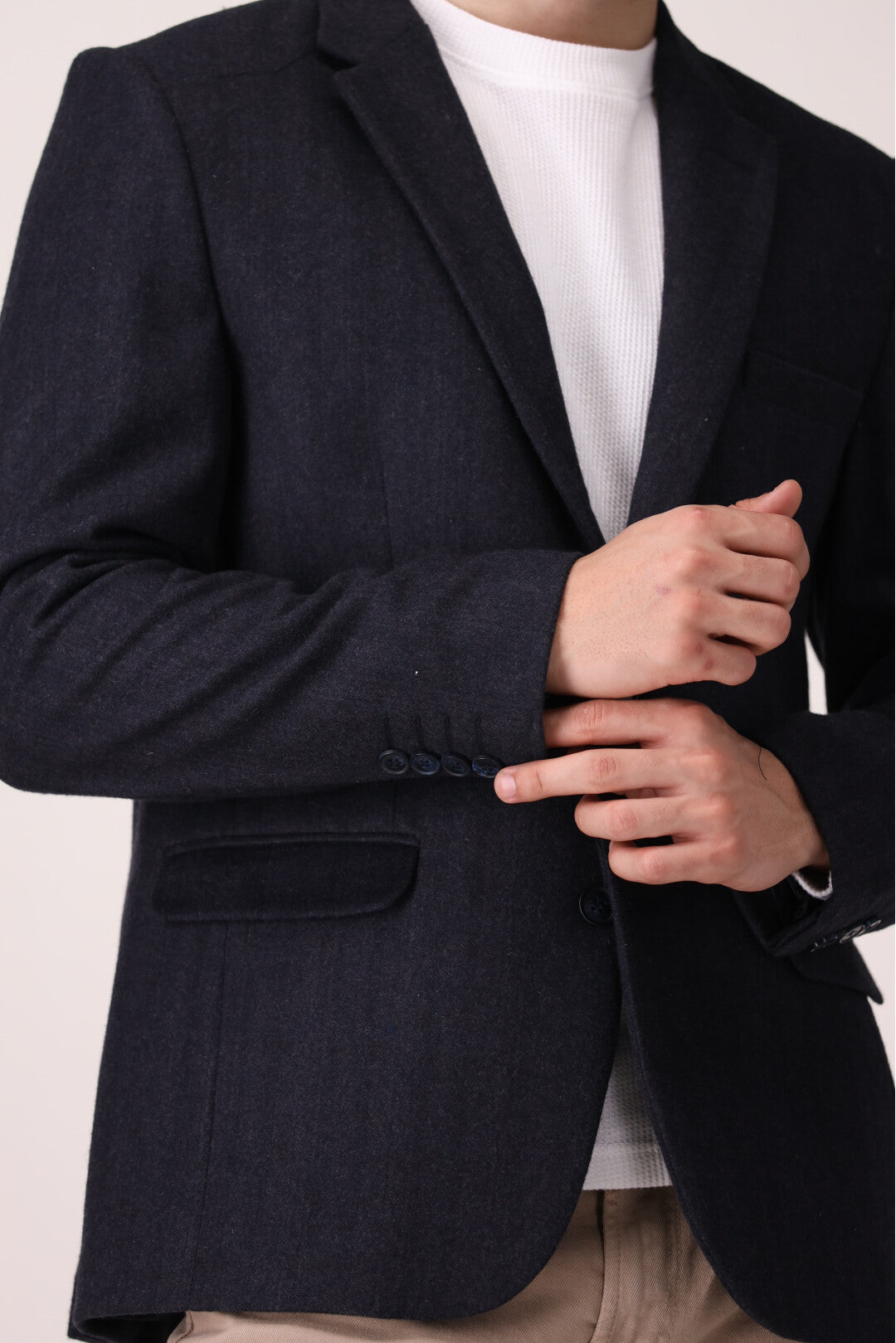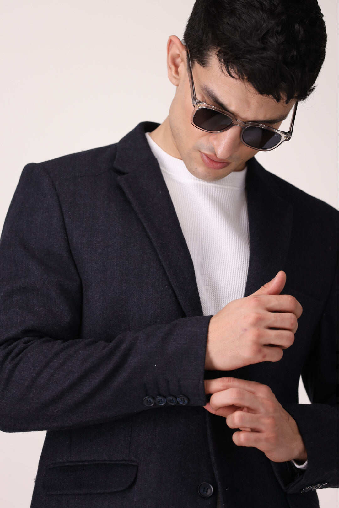 Winter slim fit coats featuring notch collar style, with two buttons fastening and two side vents.