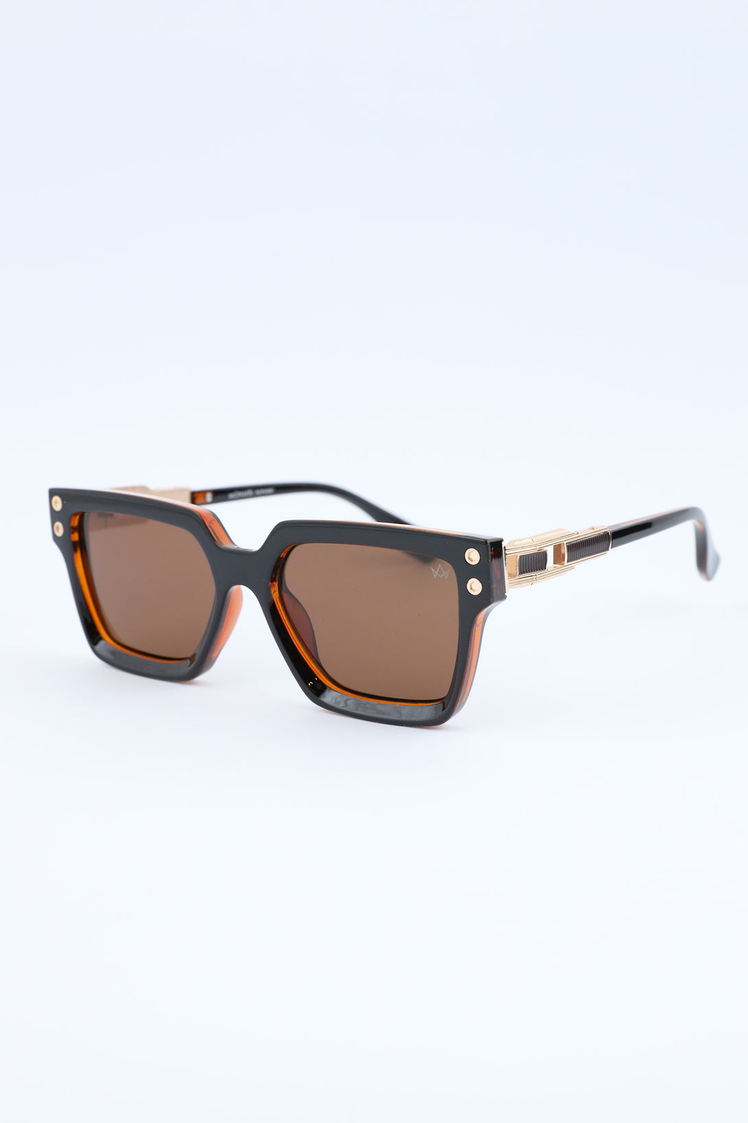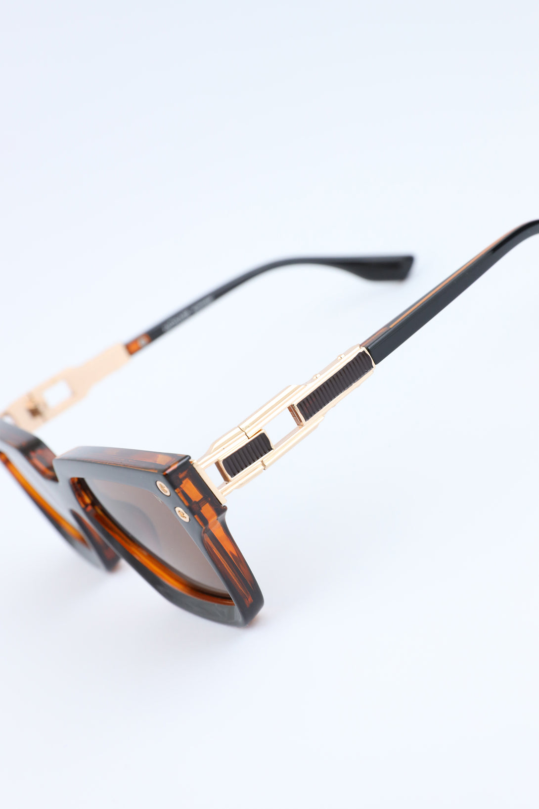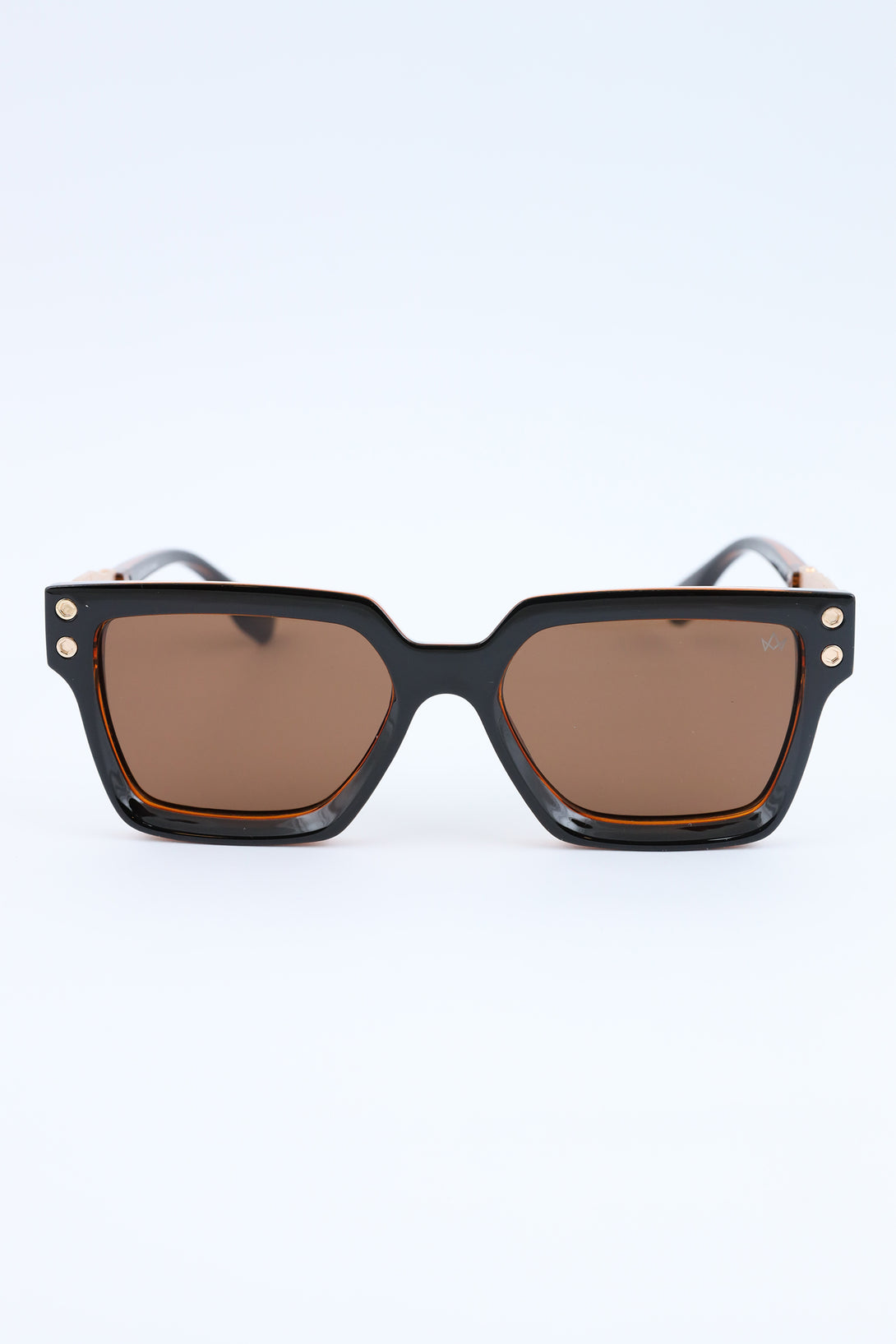A bold box frame softened with earthy brown tones, perfect for versatile everyday wear.