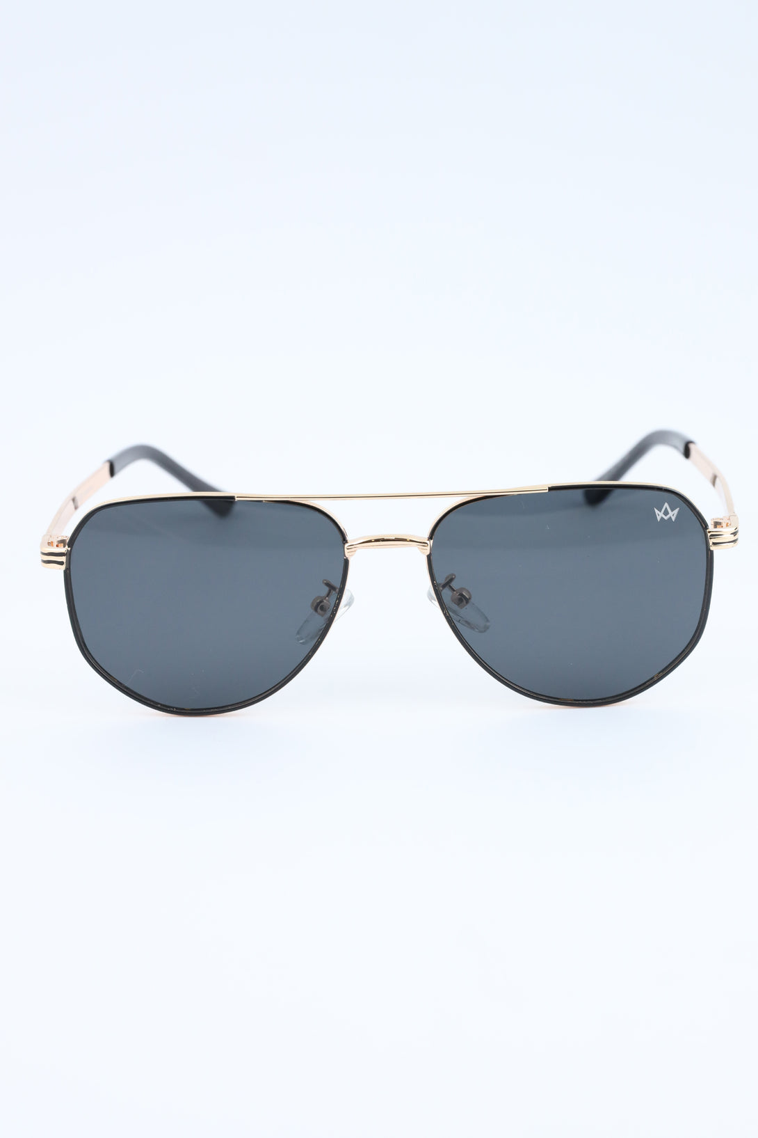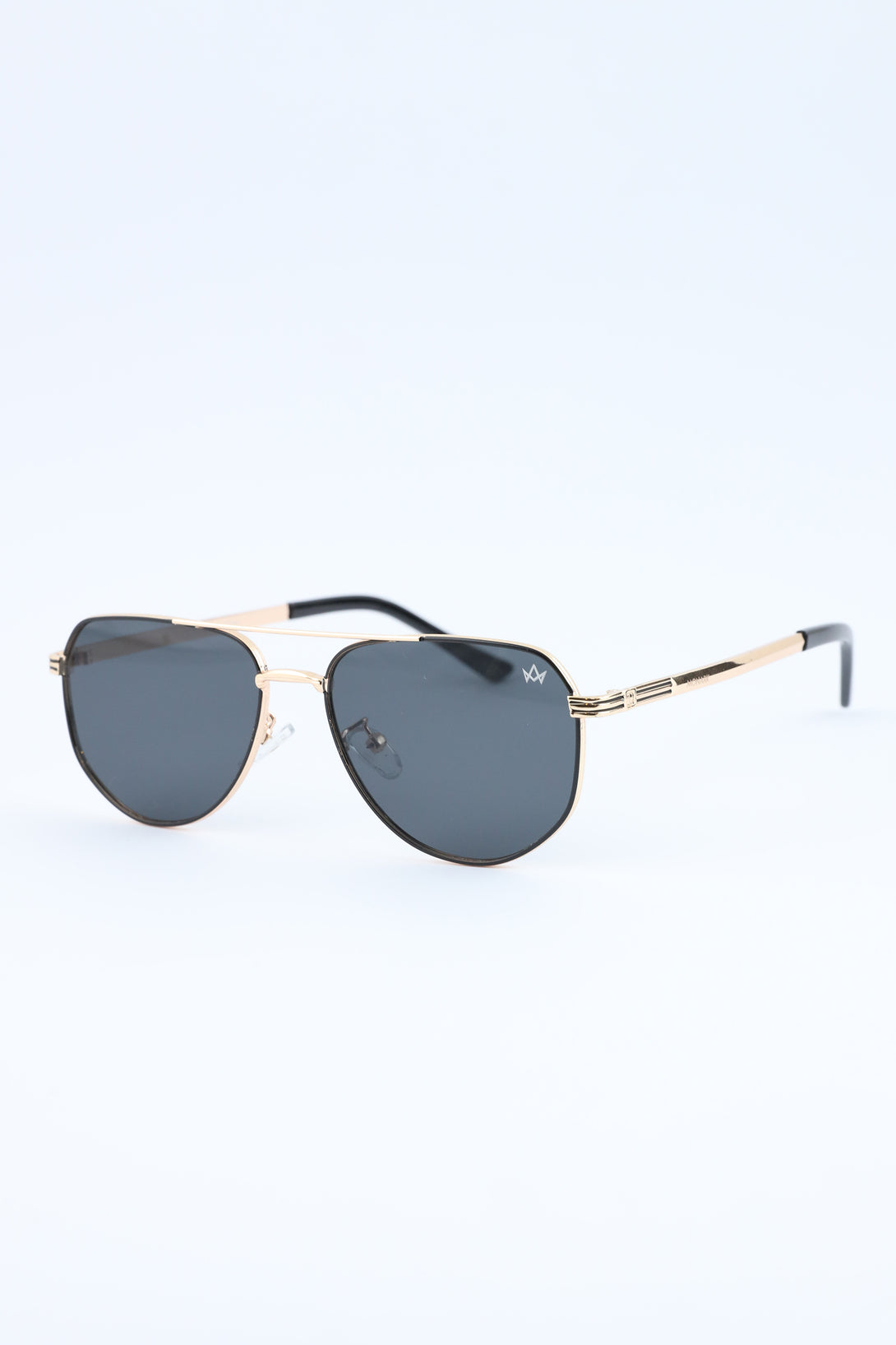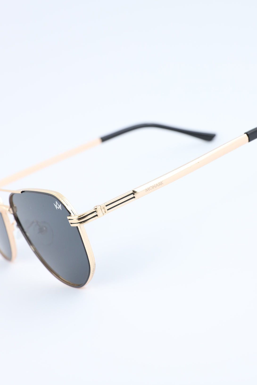 Distinctive geometric frames uplifted with golden accents for a bold statement look.
