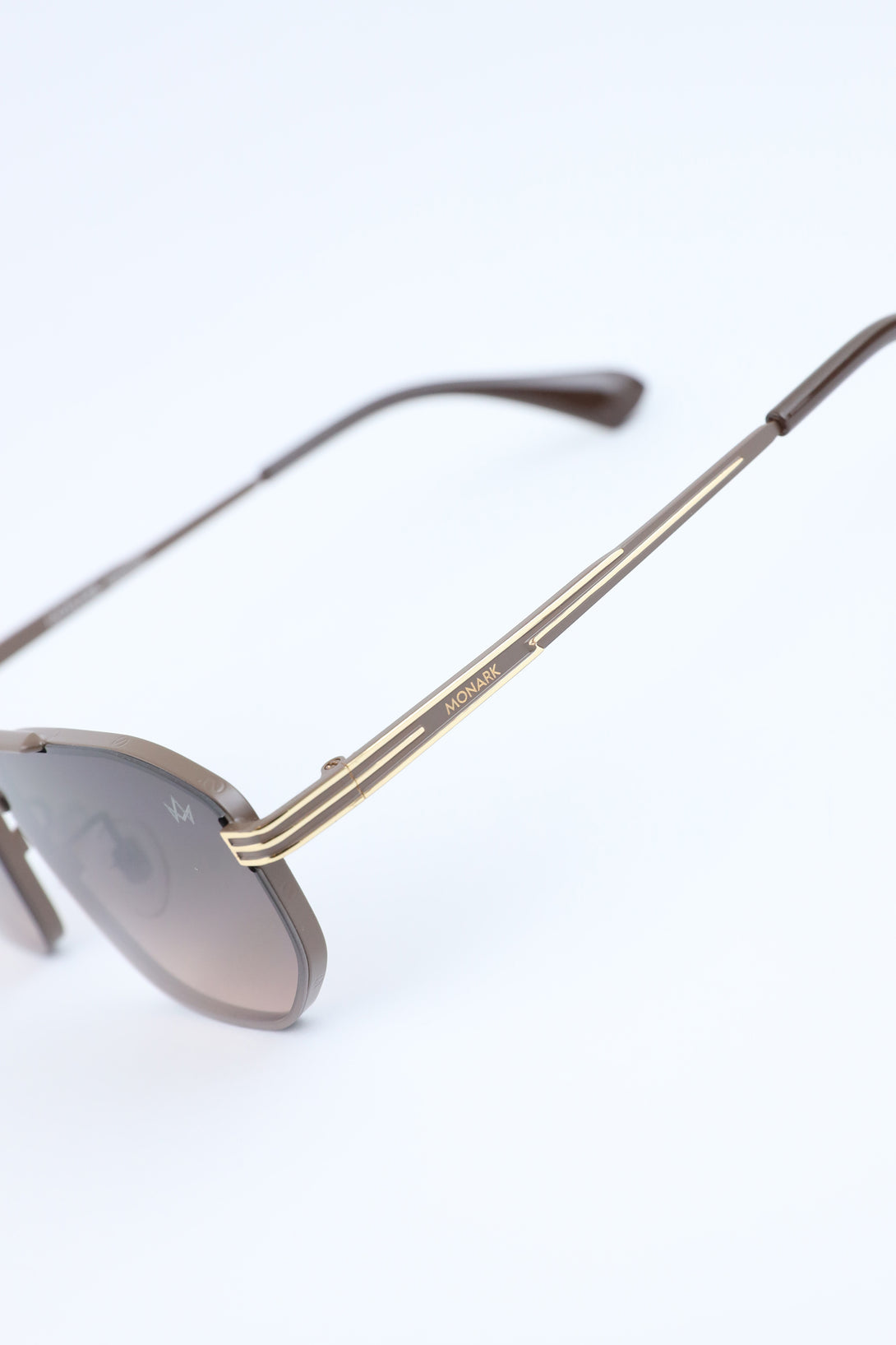 Tan-brown geometric frames that balance natural warmth with a contemporary edge.