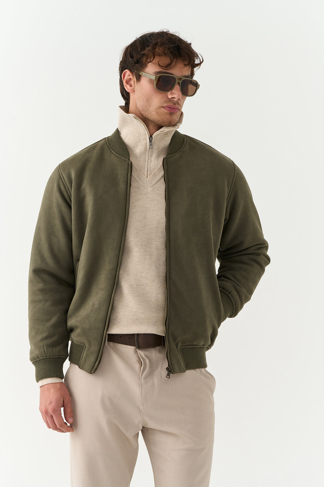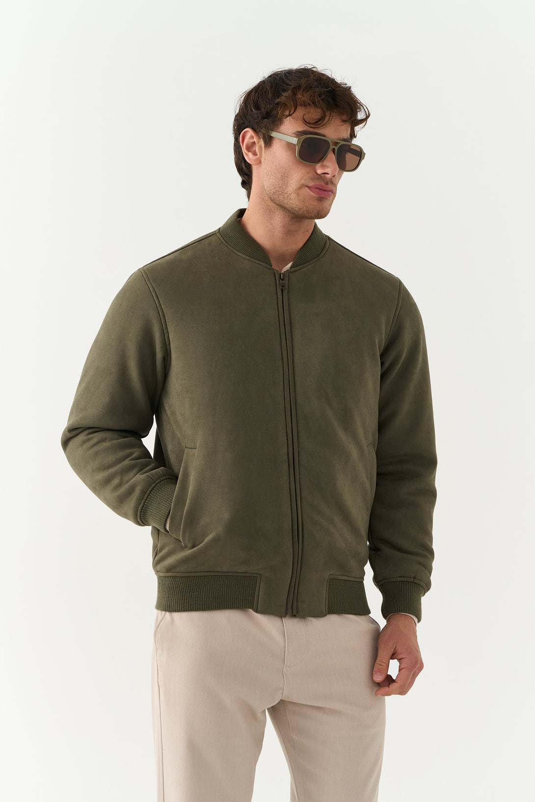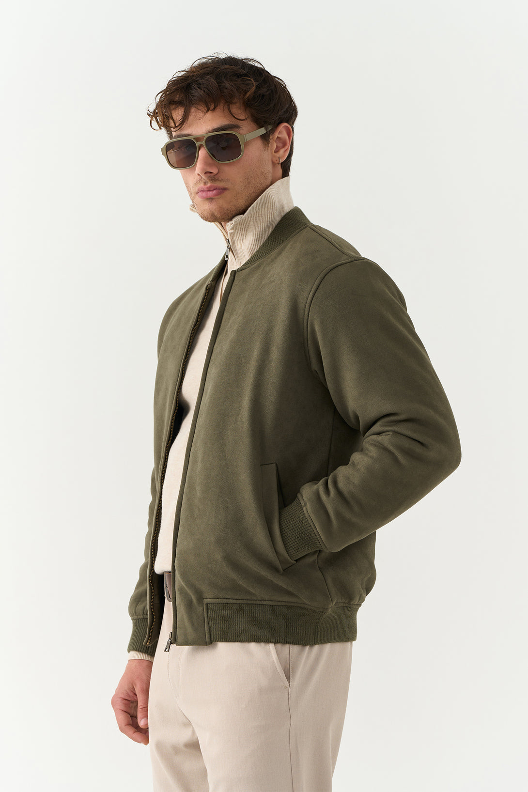 The Olive Suede Jacket brings a touch of luxury to casual outerwear. Made with a rich suede finish, it’s soft to the touch and visually refined — a statement piece for transitional weather.