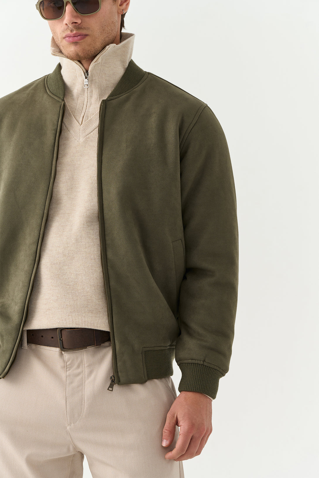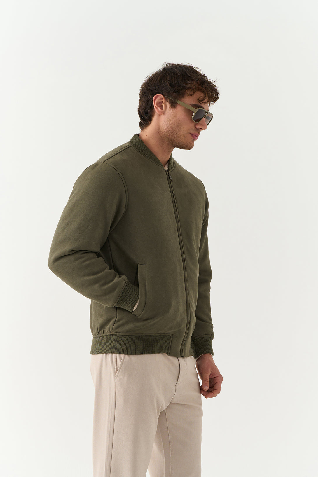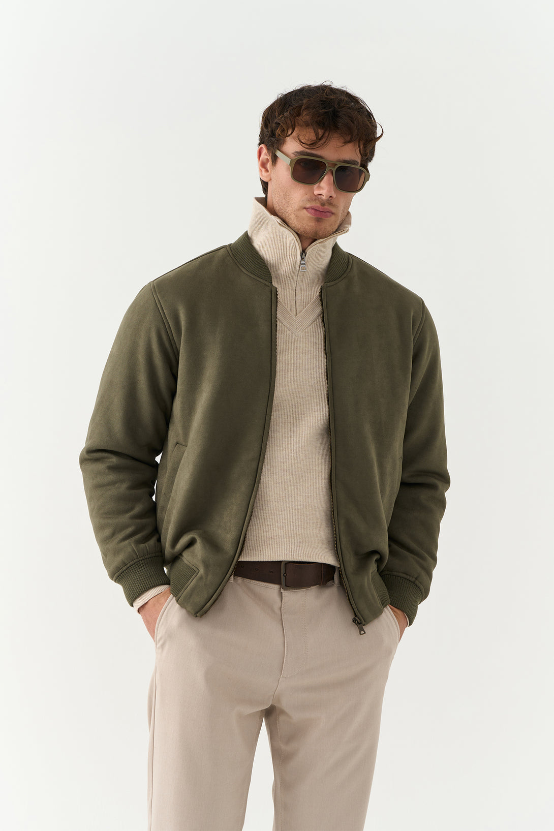The Olive Suede Jacket brings a touch of luxury to casual outerwear. Made with a rich suede finish, it’s soft to the touch and visually refined — a statement piece for transitional weather.