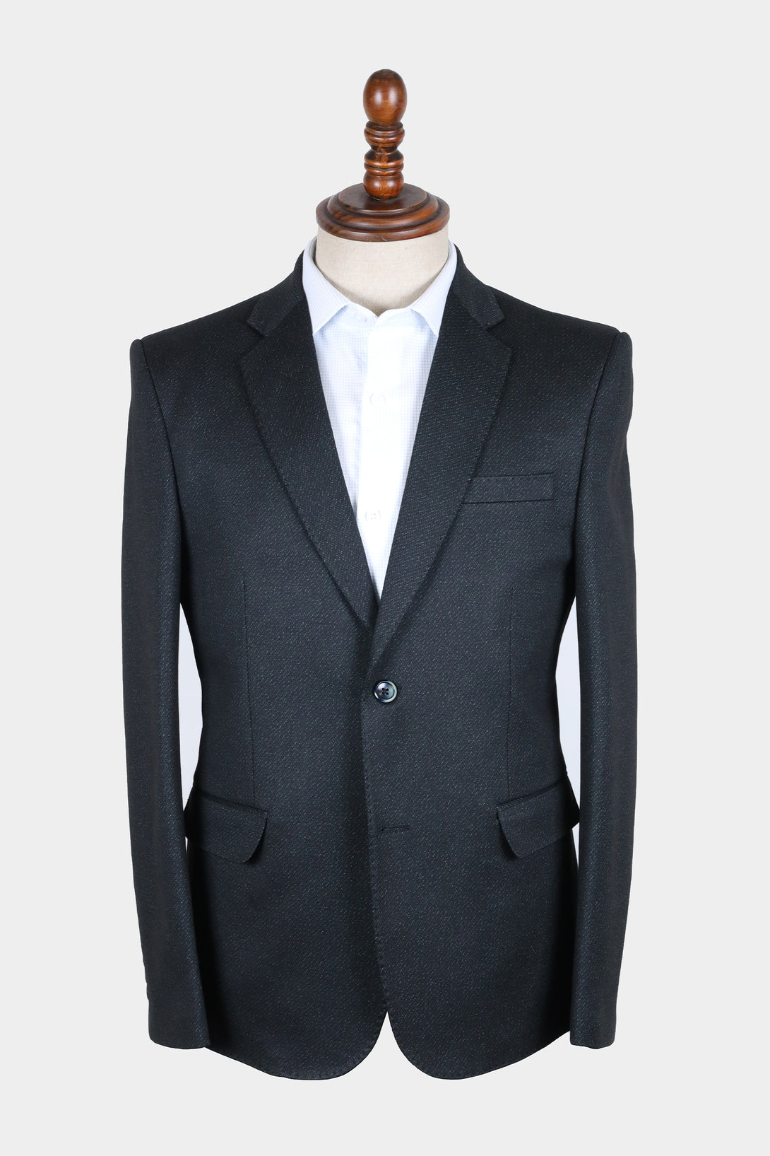 The Black Textured Formal Coat redefines classic tailoring with a modern tactile finish. Ideal for formal occasions or business settings where refinement matters.