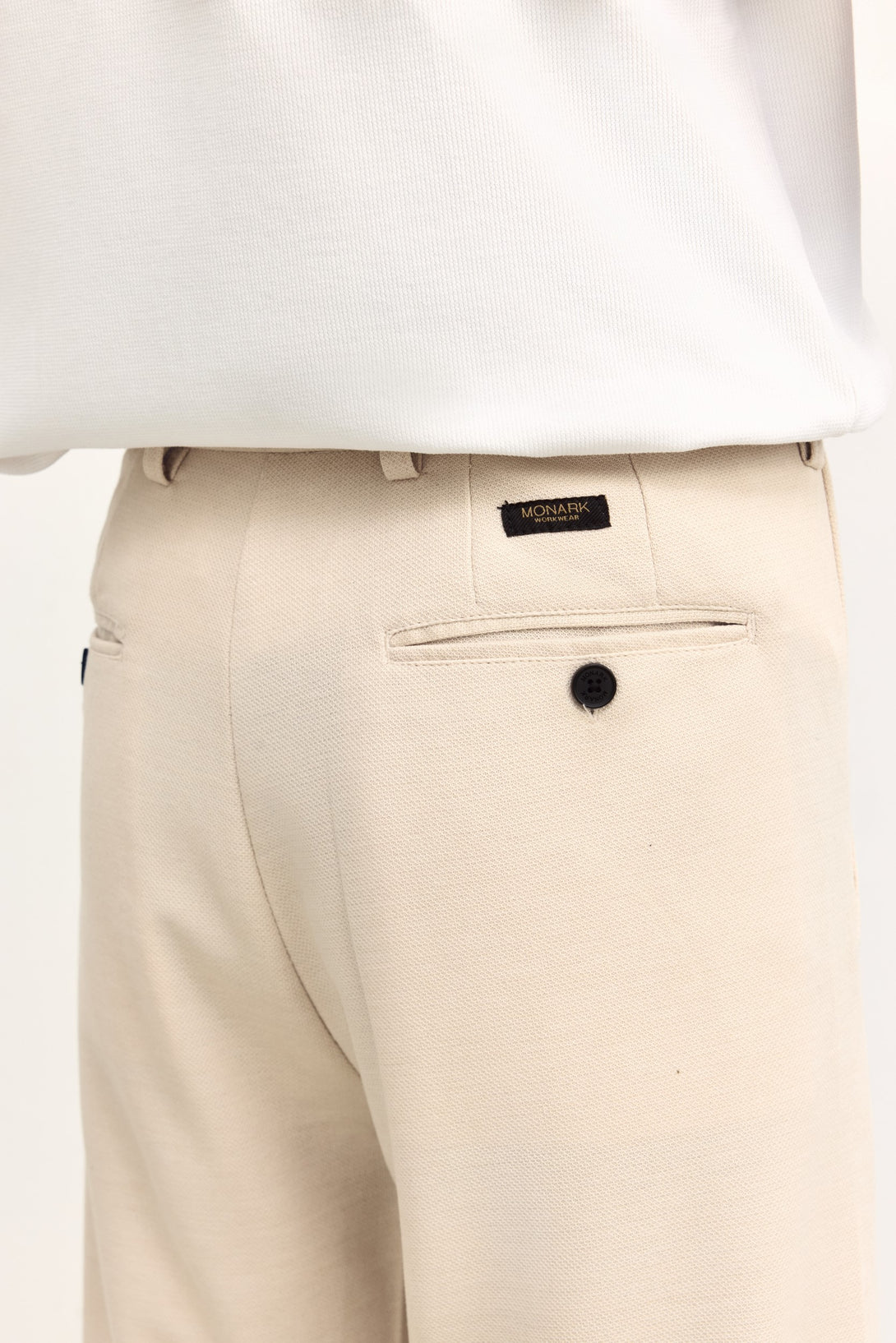 Refined and airy, the Off-White Knitted Chino Pant is a wardrobe essential for the season. Its lightweight knit ensures maximum comfort while maintaining a crisp tailored silhouette. Ideal for summer styling, pair it with vibrant or neutral tops for a polished appearance.