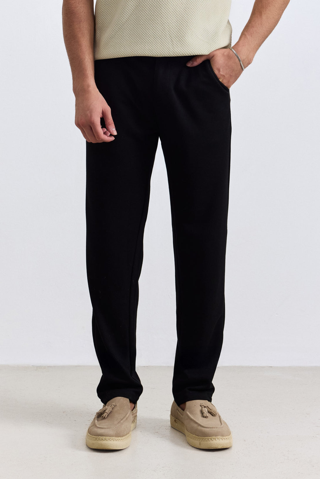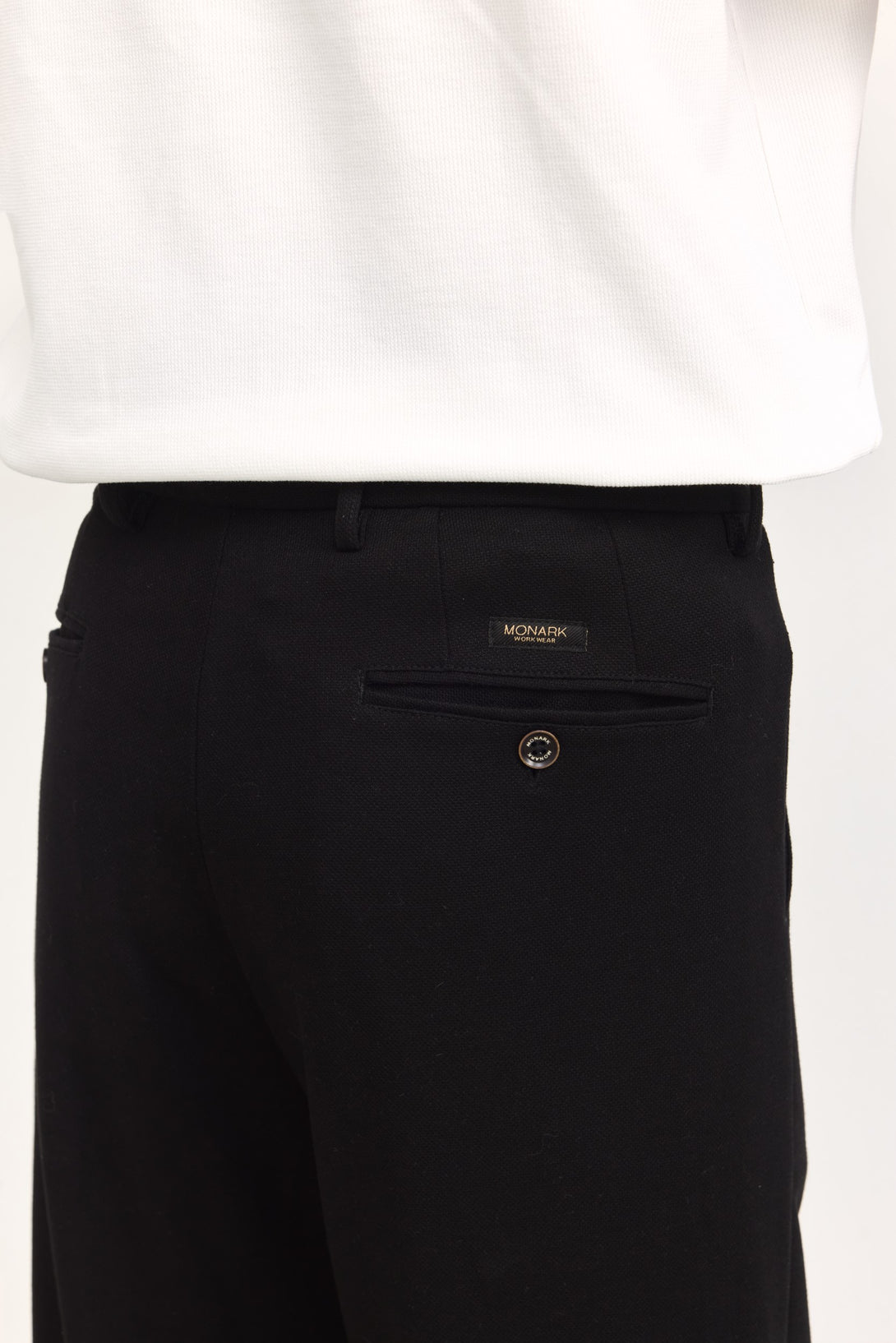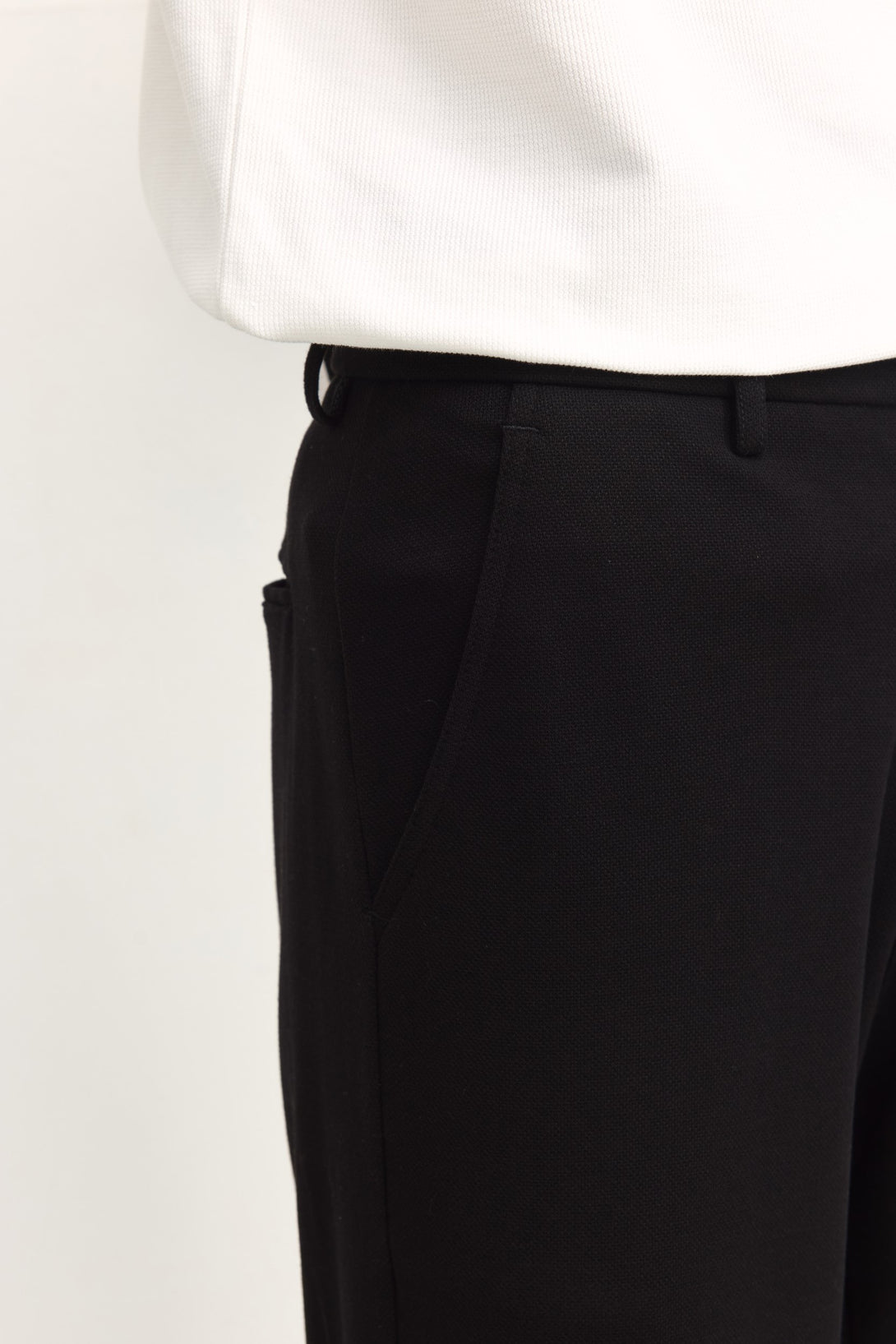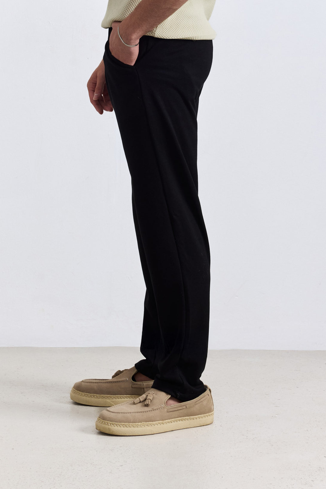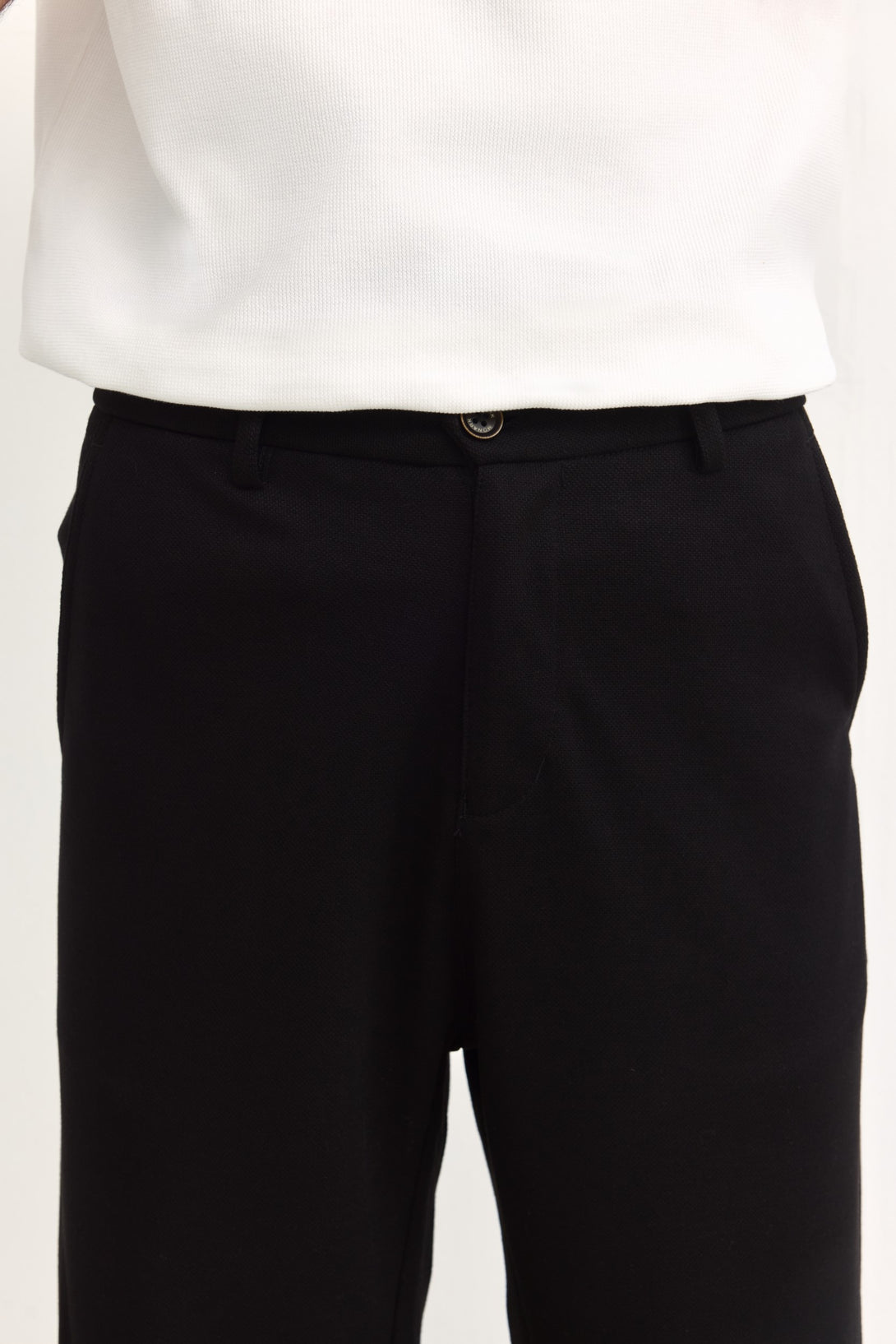 Classic and timeless, the Black Knitted Chino Pant is a go-to piece for any occasion. Crafted in breathable knit fabric, it delivers all-day comfort without compromising on style. Whether dressed up or down, it’s a versatile choice for your summer rotation.