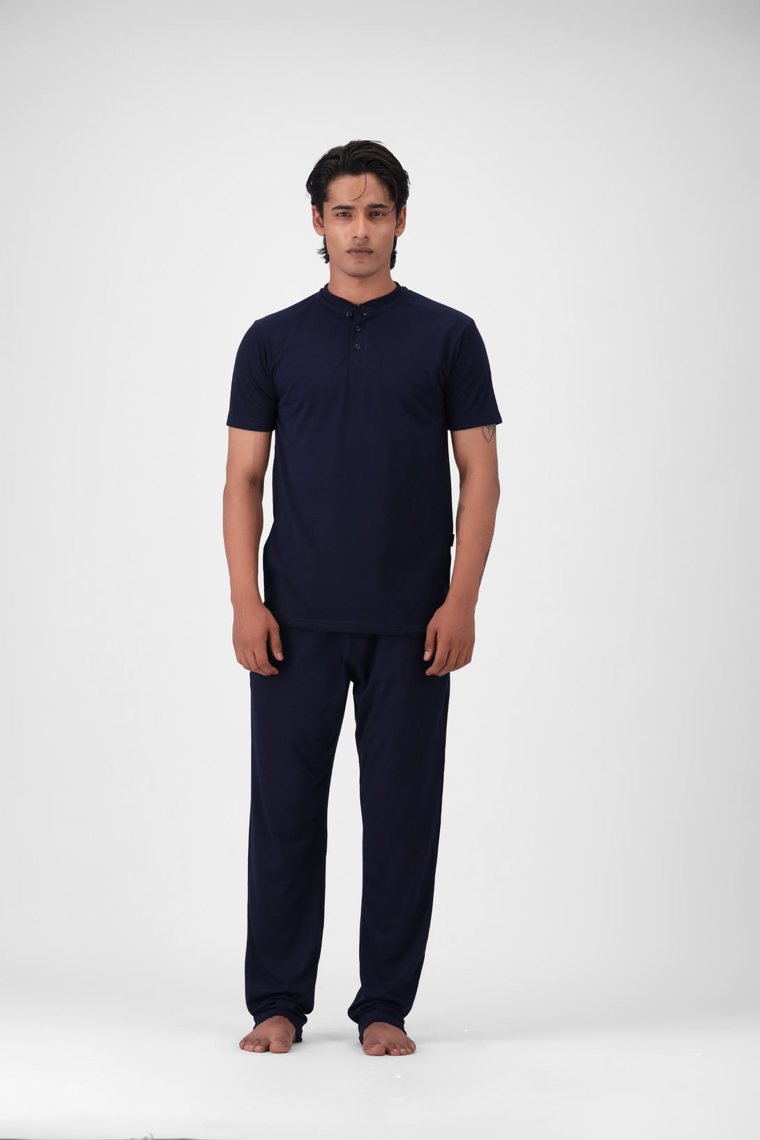 Lounge wear set featuring thermal full sleeve top with kintted terry relax trouser.