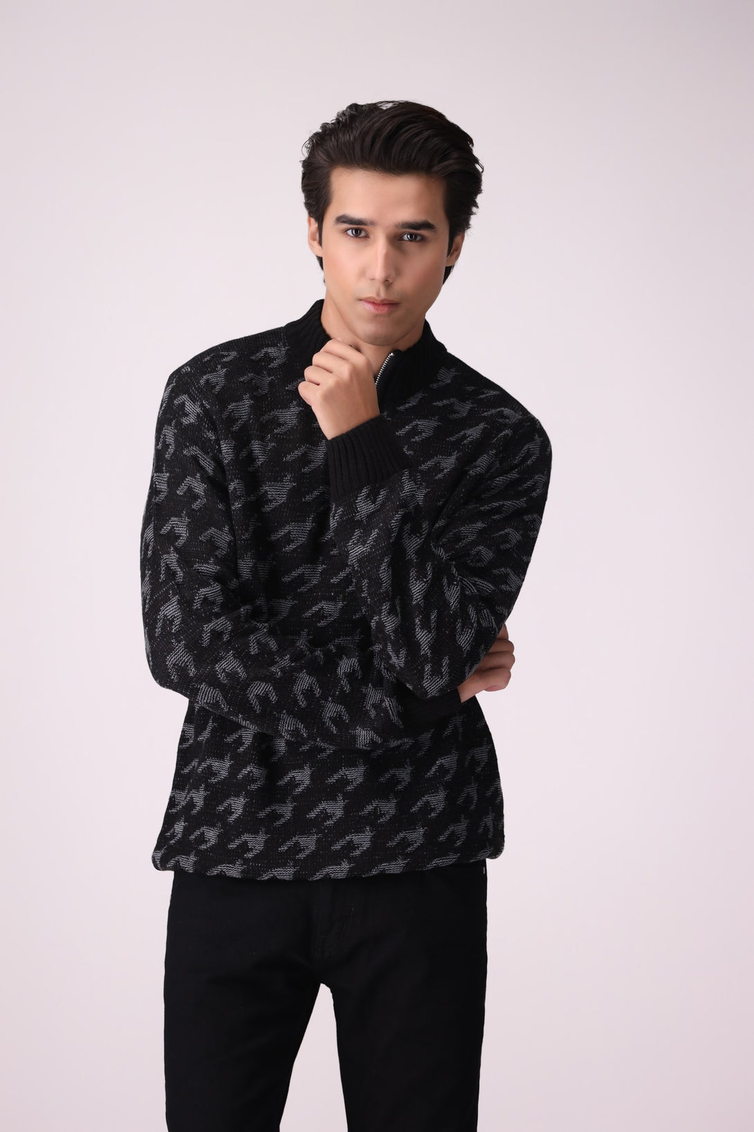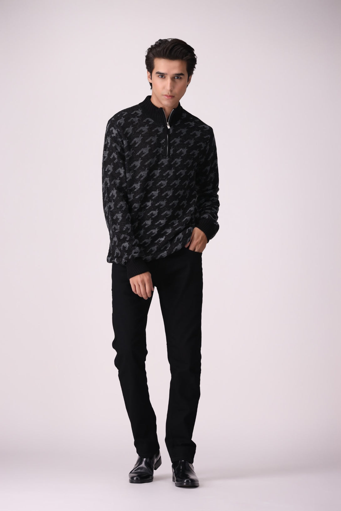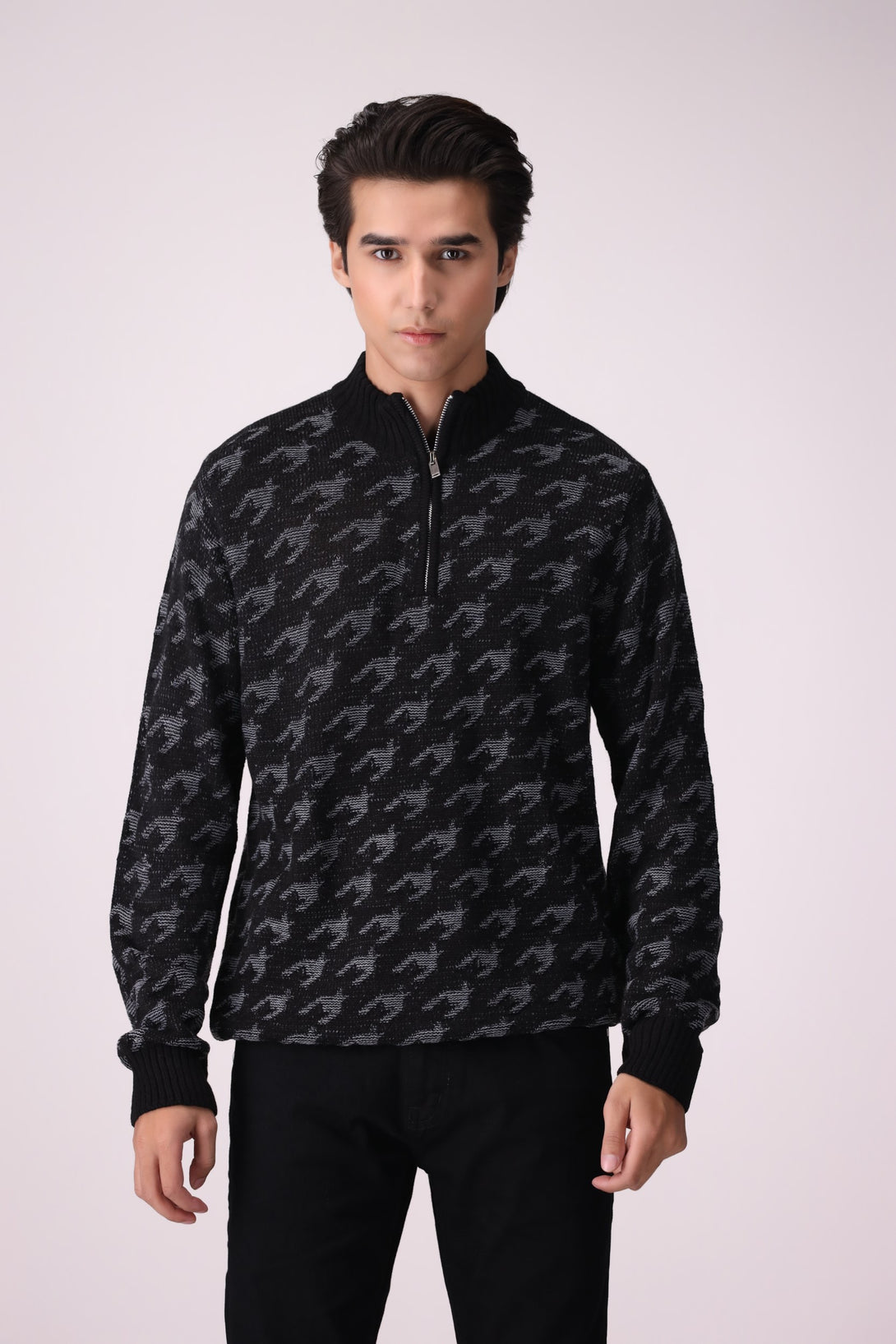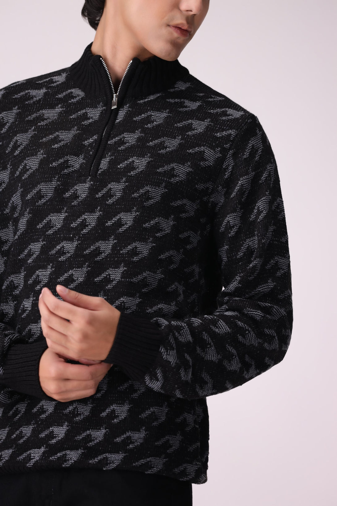 HALF-ZIP PATTERNED SWEATER