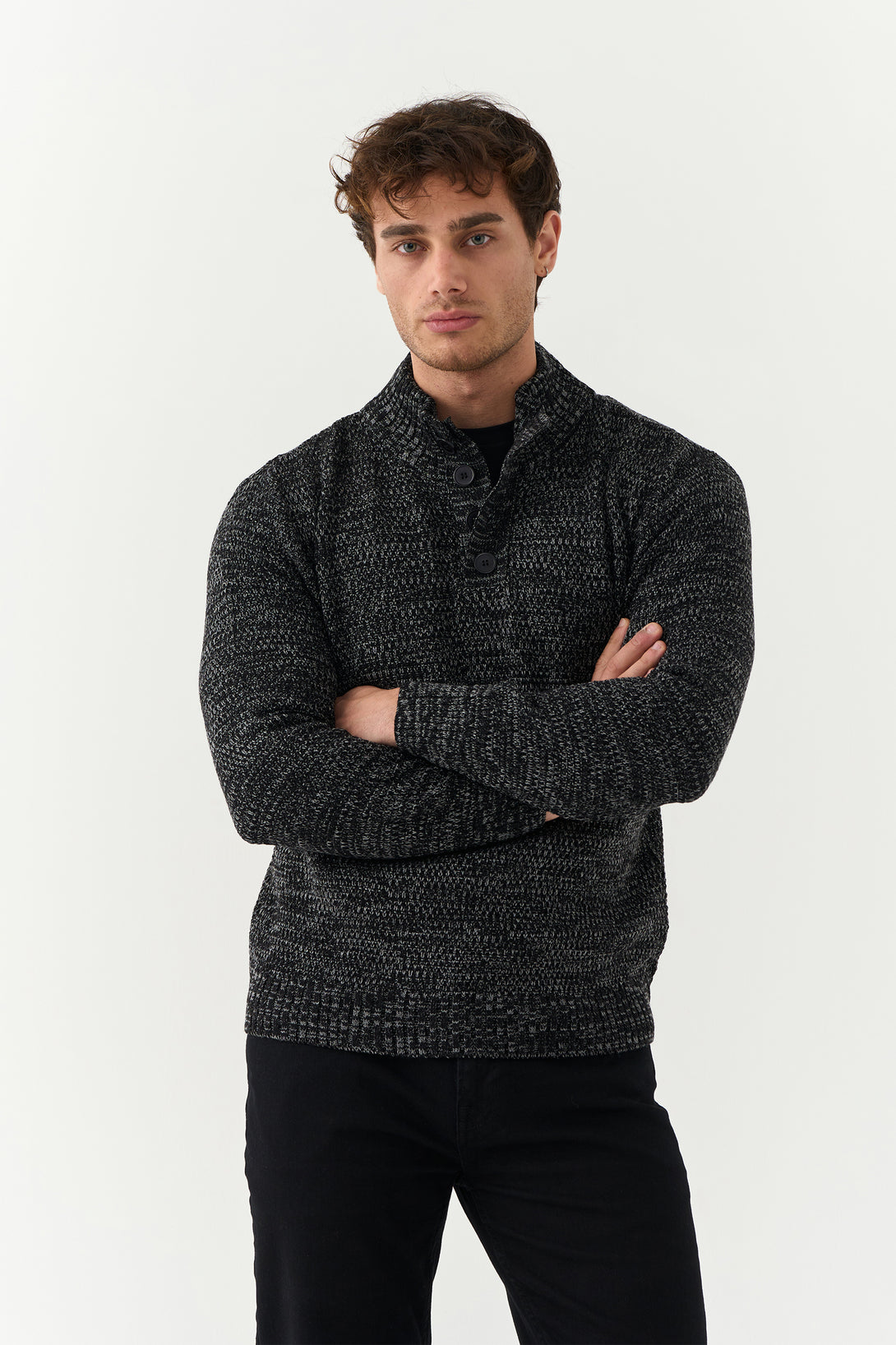 Smart and versatile, the Charcoal Henley Sweater combines the relaxed comfort of knitwear with the sophistication of a buttoned neckline. A perfect balance between casual and refined.