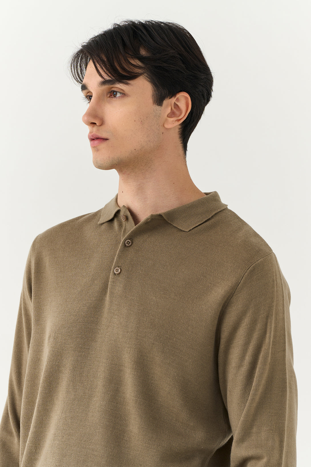 - Muted taupe brown shade complements neutral outfits