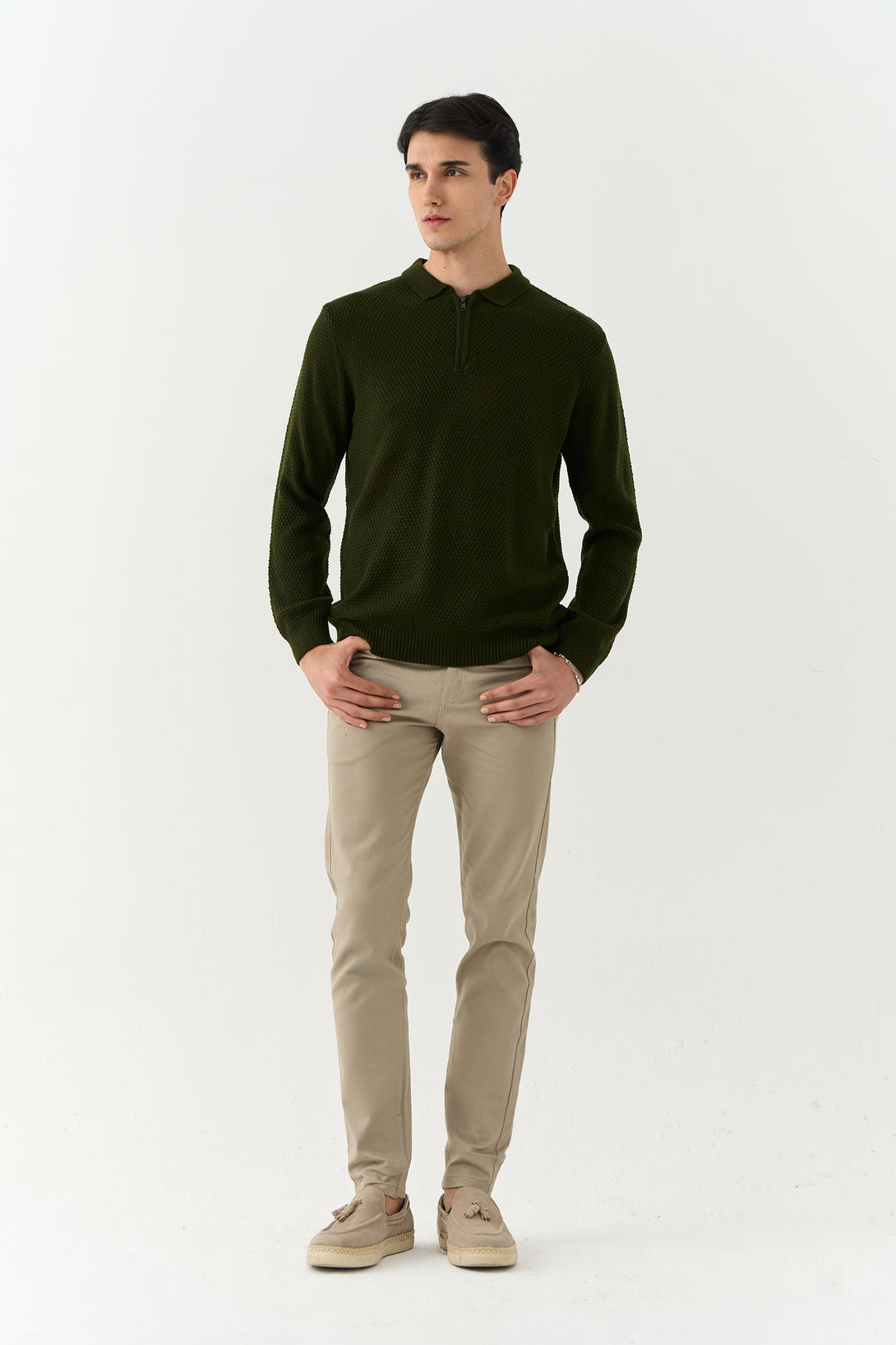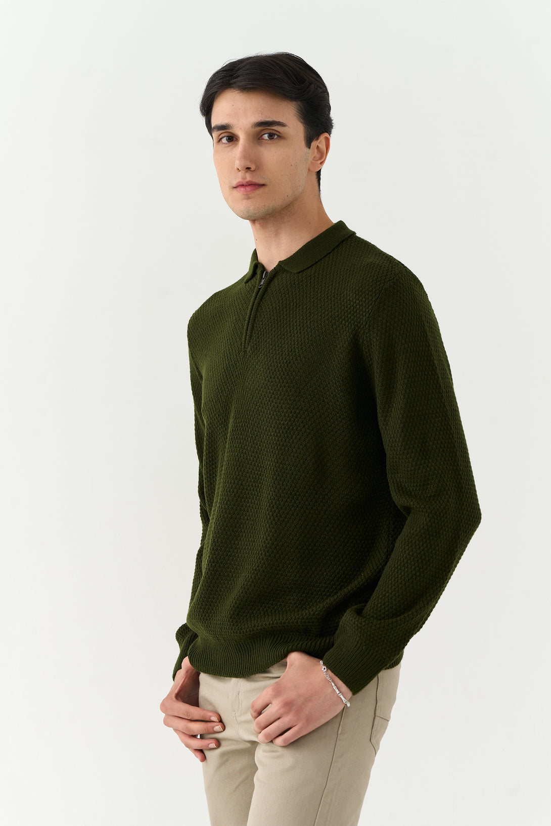 The Pine Green Quarter-Zip Sweater brings a refreshing tone to classic winter style. Designed with a soft knit texture and refined fit, it offers a perfect balance of comfort and confidence.