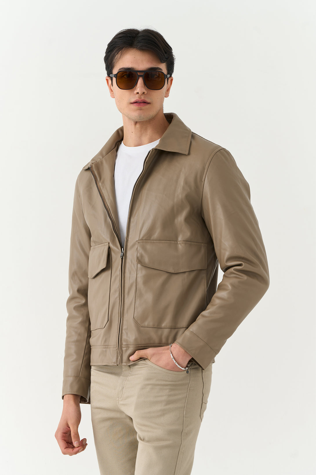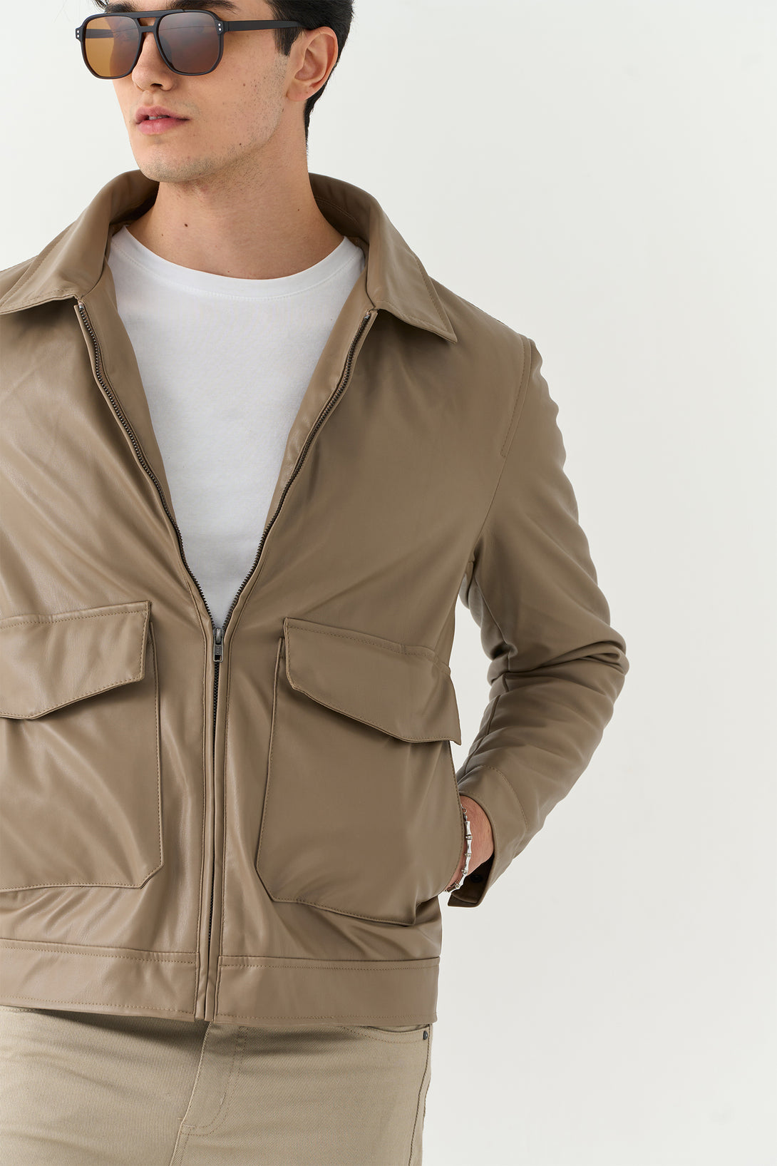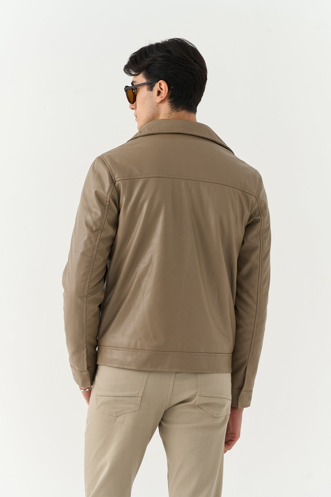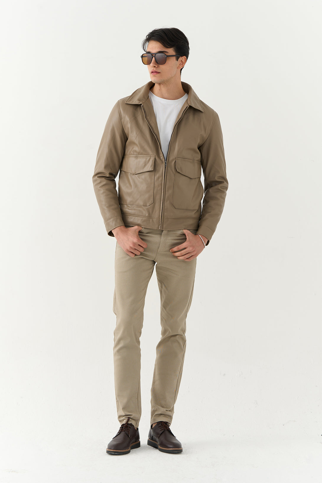 Modern and minimal, the Beige Biker Jacket redefines classic biker aesthetics with a soft neutral tone. The smooth texture and clean design make it versatile for day-to-night dressing.