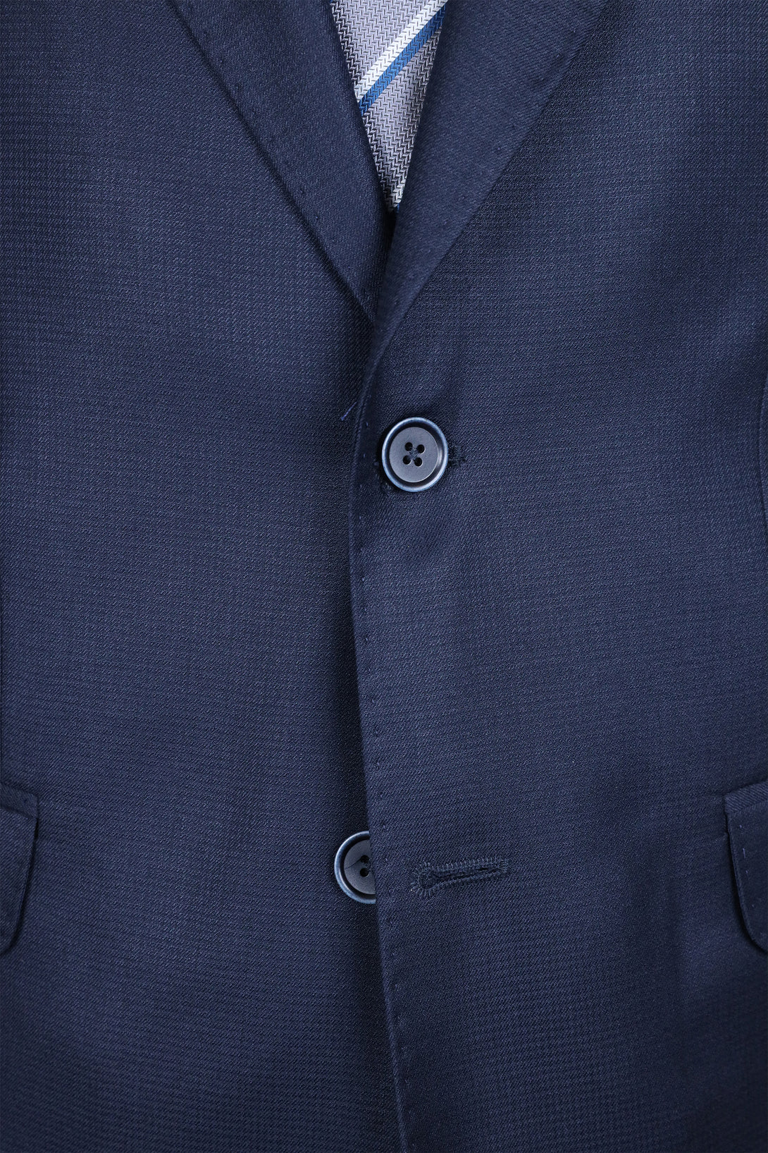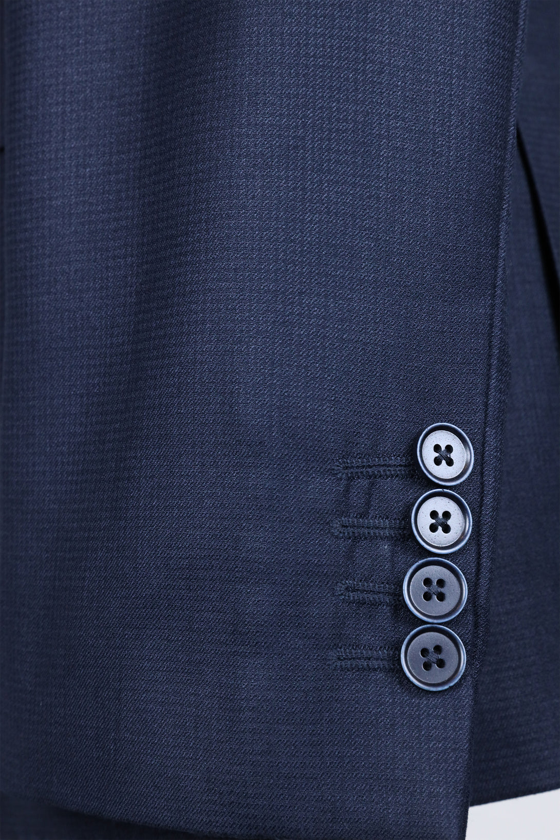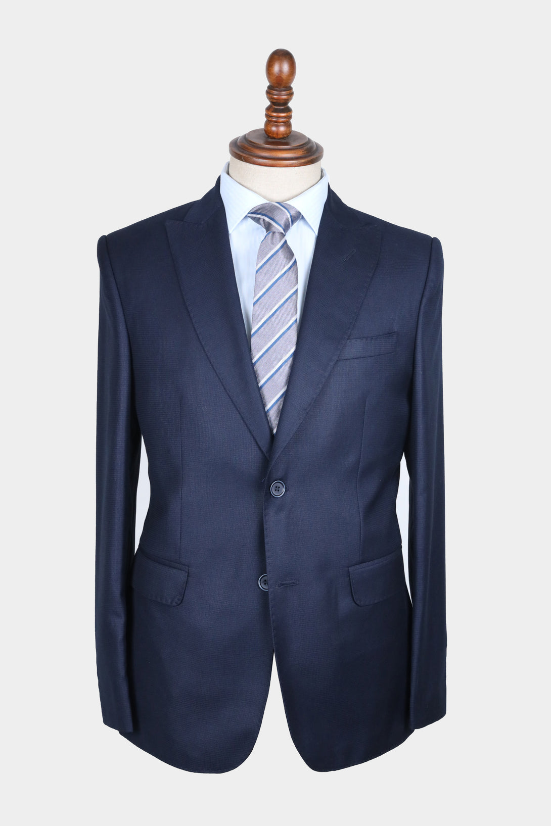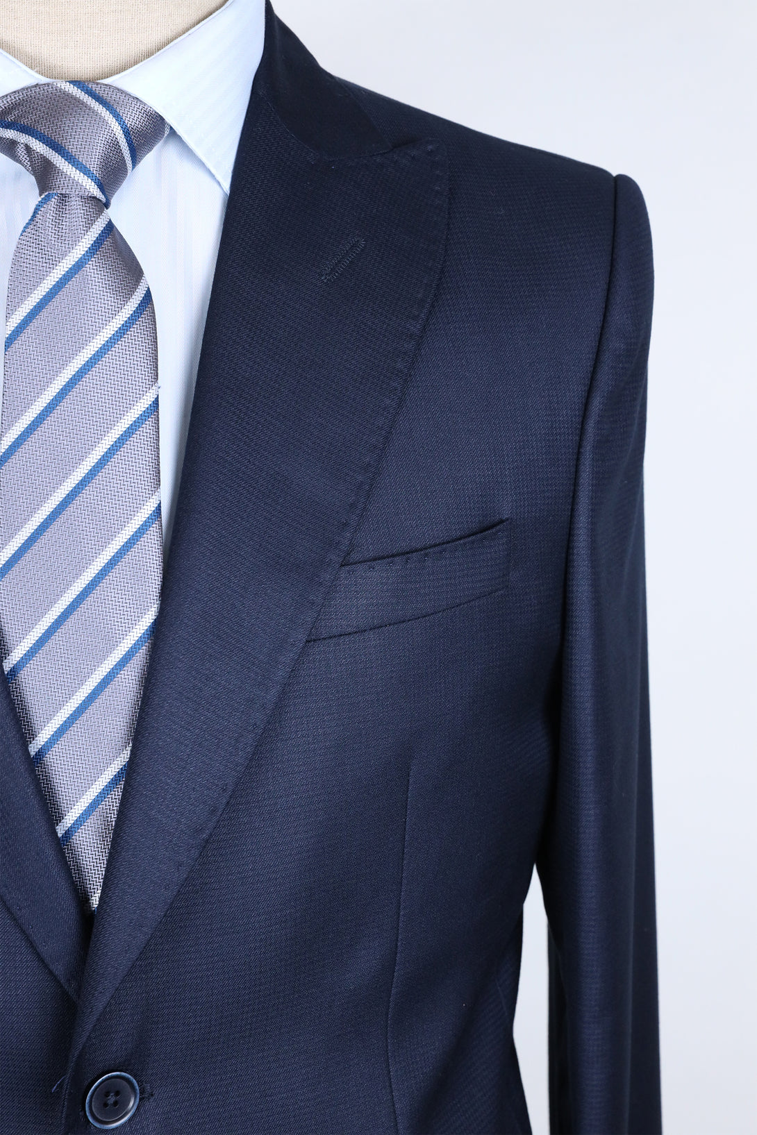 The Navy Blue Textured Two-Piece Suit is a wardrobe essential that combines sophistication with subtle detail. The textured weave elevates its classic design, making it suitable for both work and formal occasions.