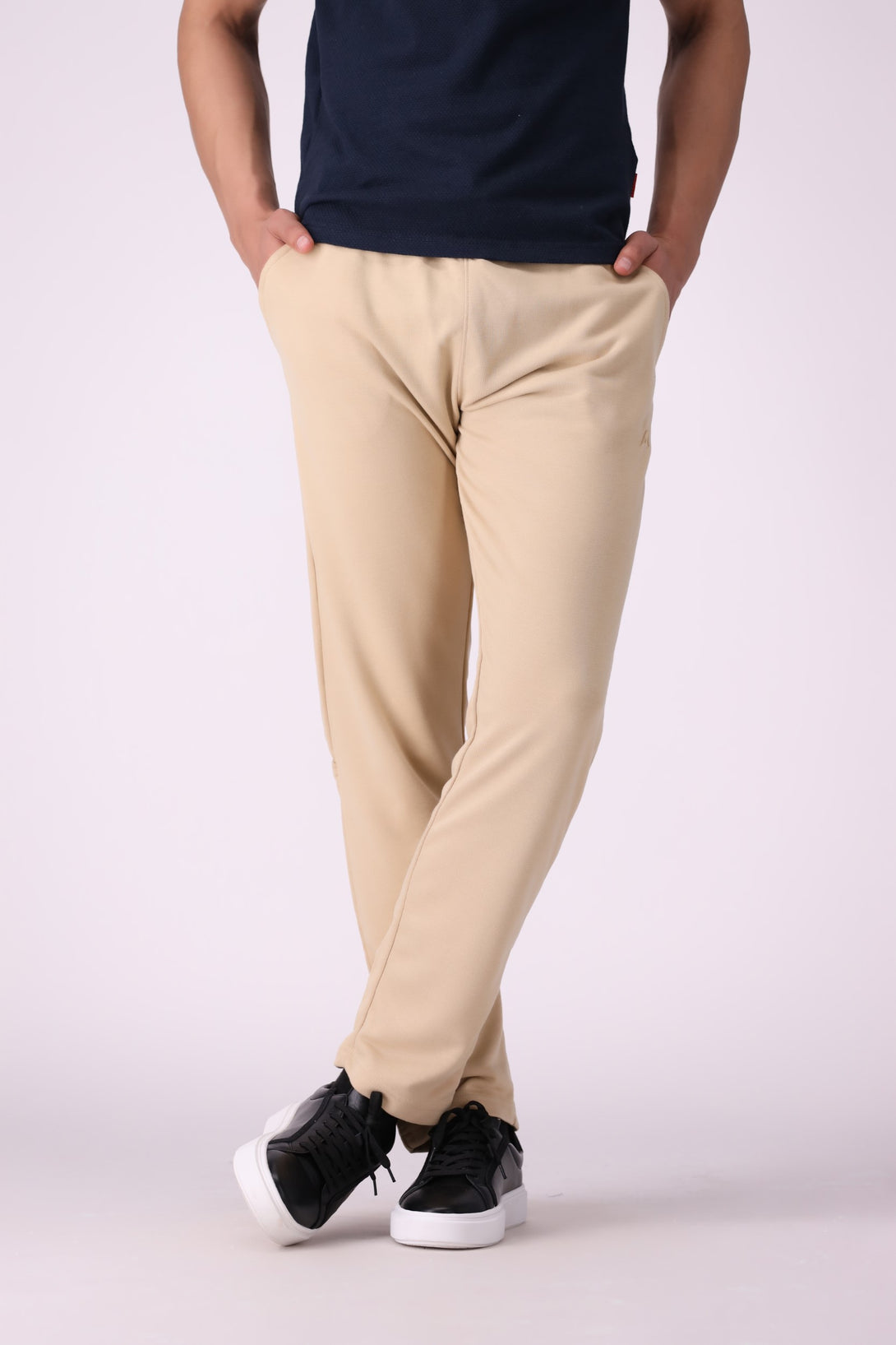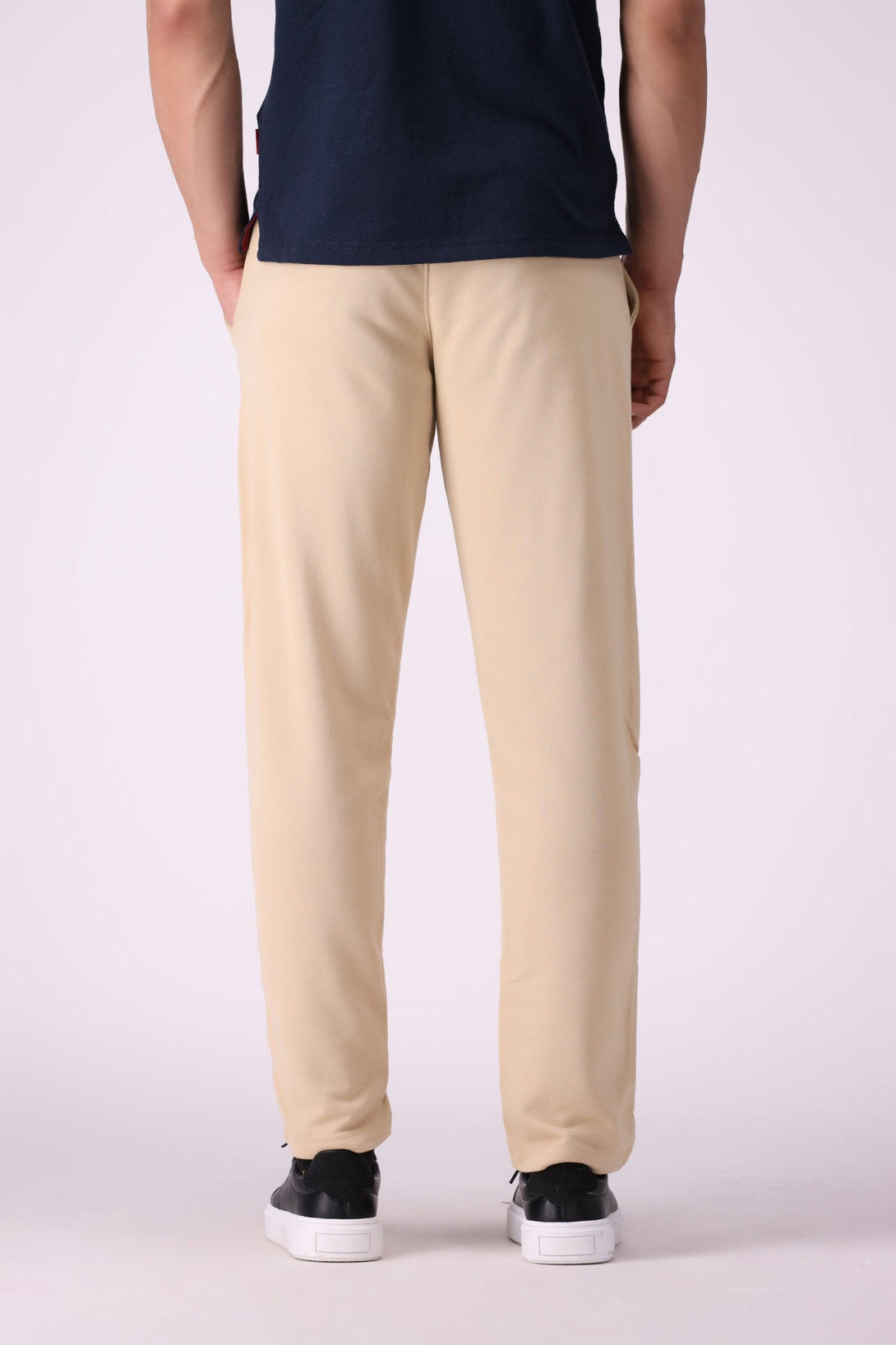 Knitted jog trouser features slim fit in style with open pockets and body color drawcord made of terry knitted fabric.