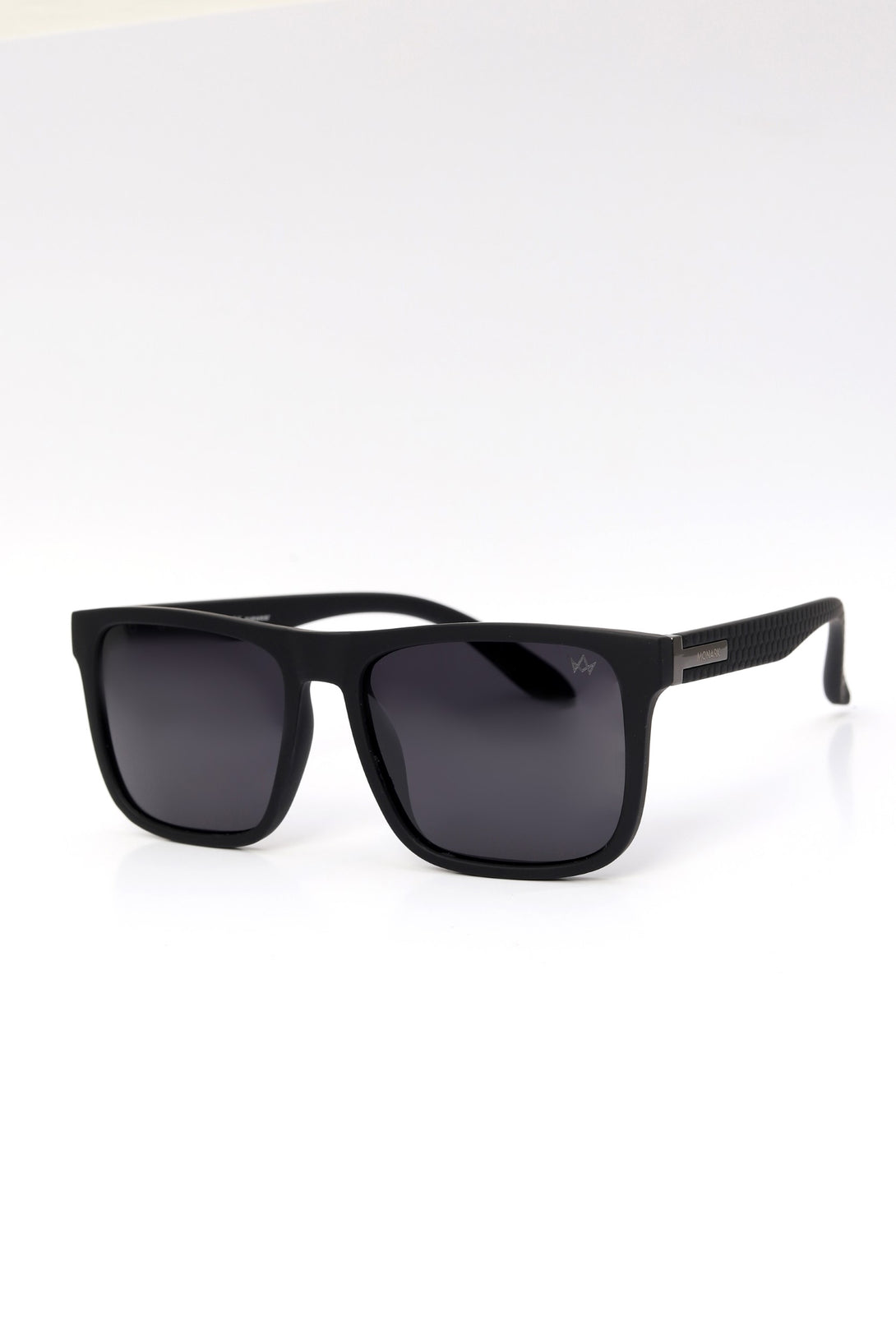 Men's fashion sunglasses features polarized lens includes a protective case embossed with a brand emblem.