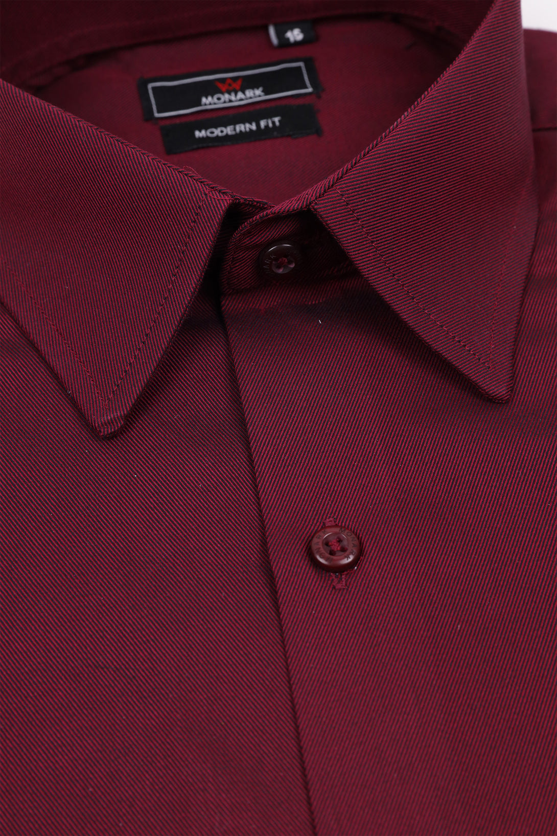 Bold yet refined, the Maroon Textured Formal Shirt offers a fresh pop of color in a lightweight fabric, ideal for summer evenings.