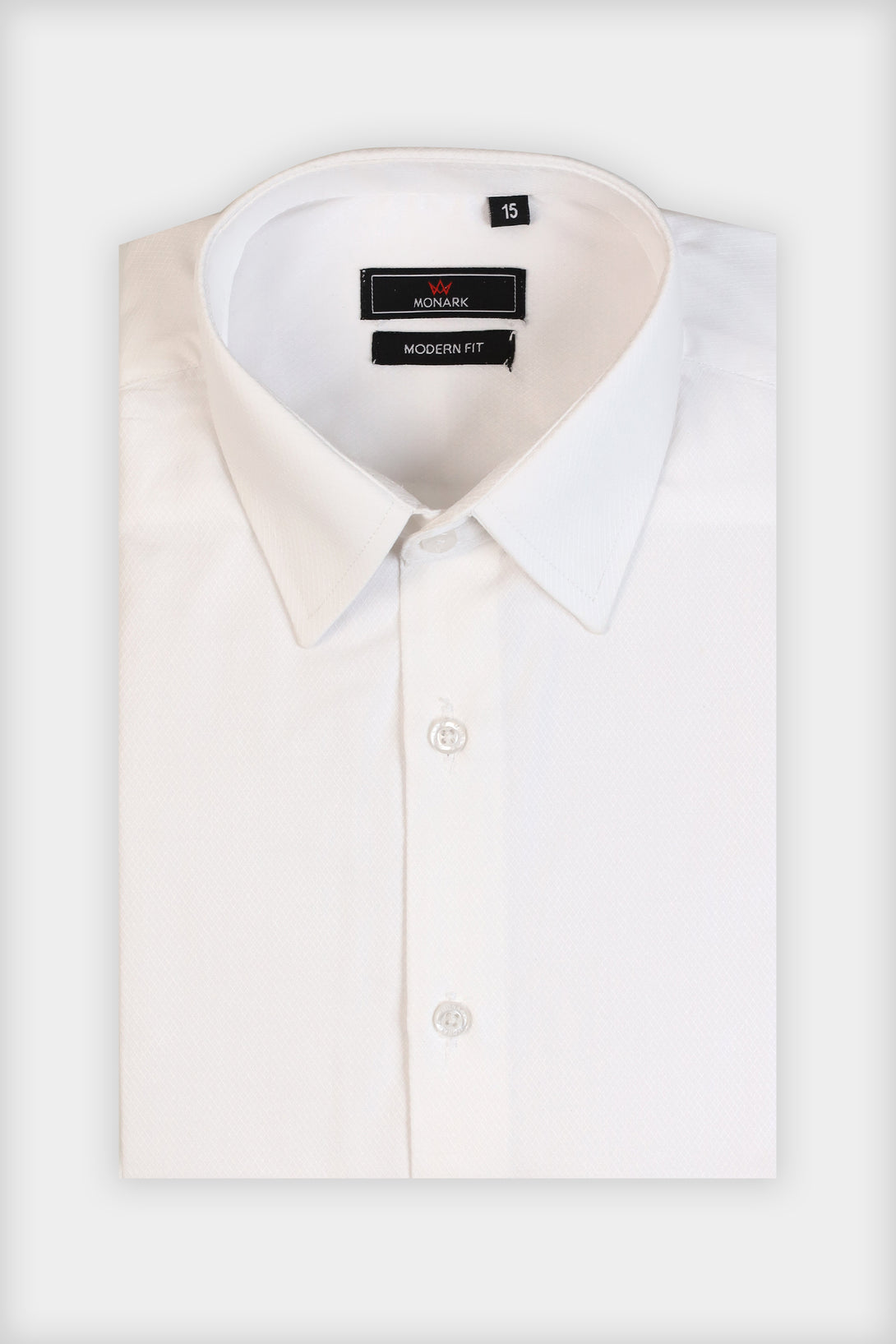 Redefine elegance with the White Textured Formal Shirt — a timeless essential with modern sophistication. The fine texture adds depth to its clean white base, making it ideal for both business and formal occasions.