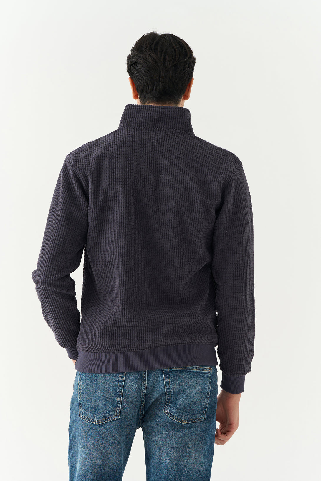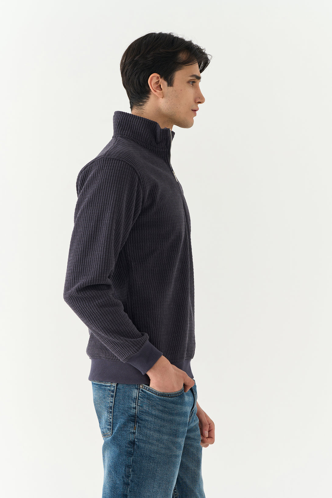 - Ribbed cuffs and hem for structure