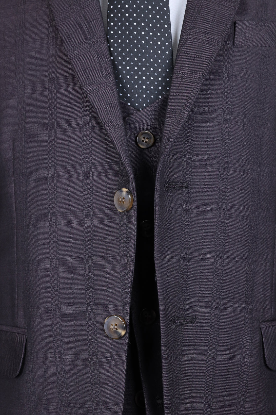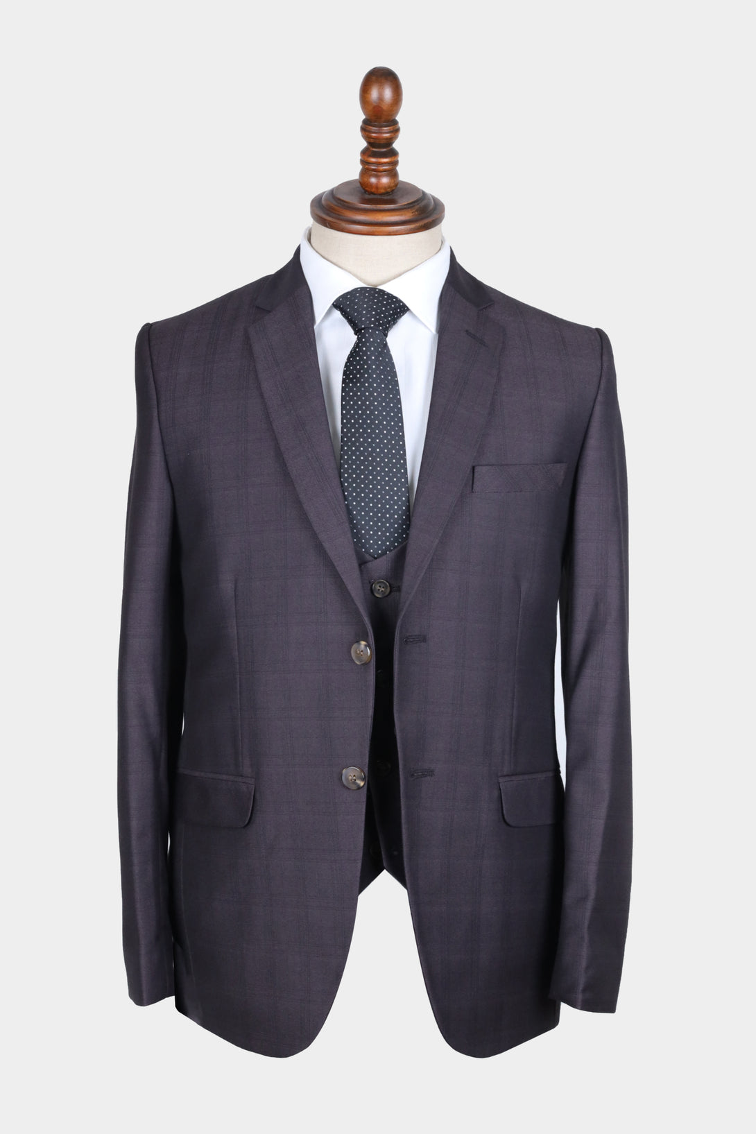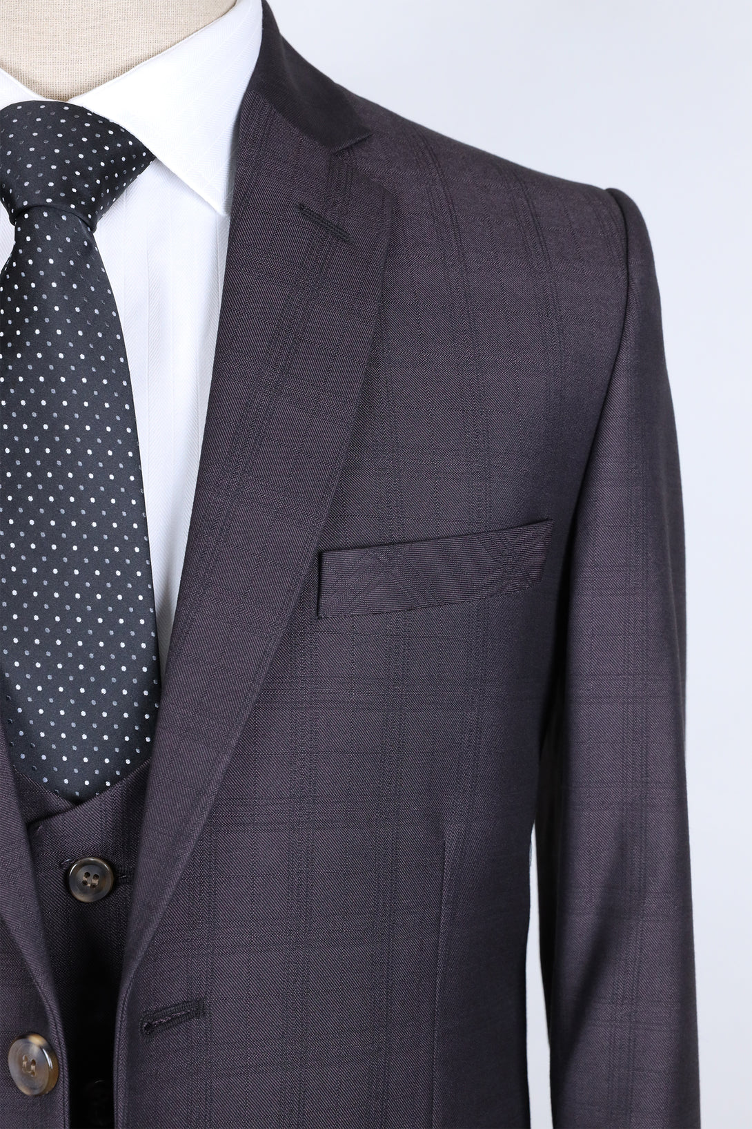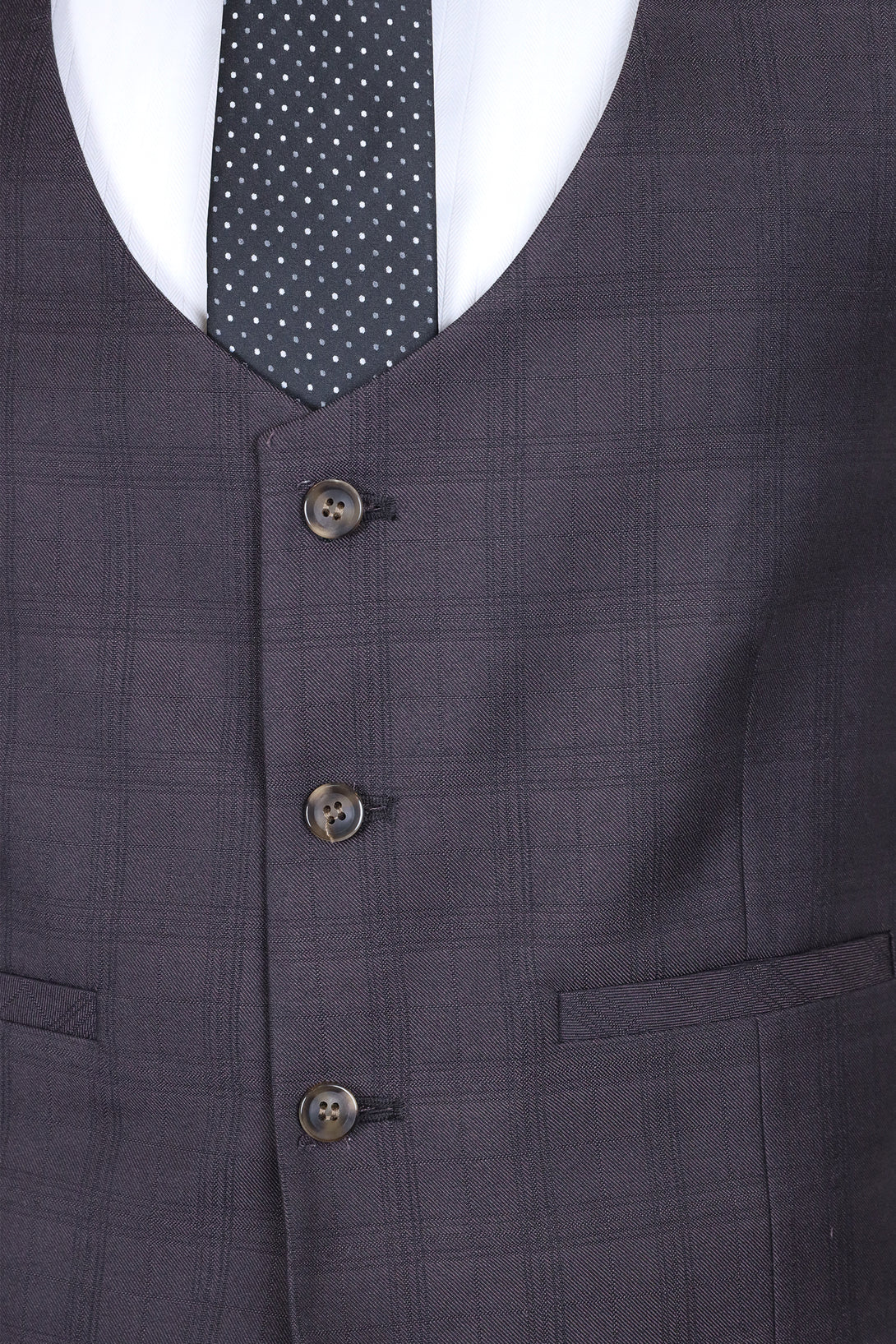 Make a bold impression with the Maroon Textured Three-Piece Suit. Its deep tone and refined texture set it apart, exuding confidence and charisma.