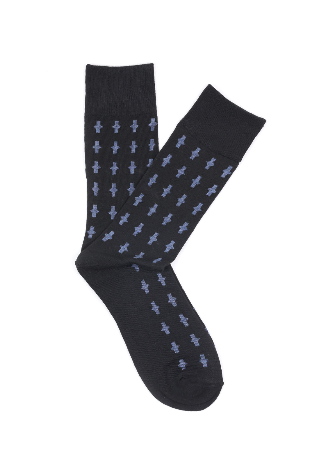 Sleek black socks featuring patterned detailing for a touch of distinction.