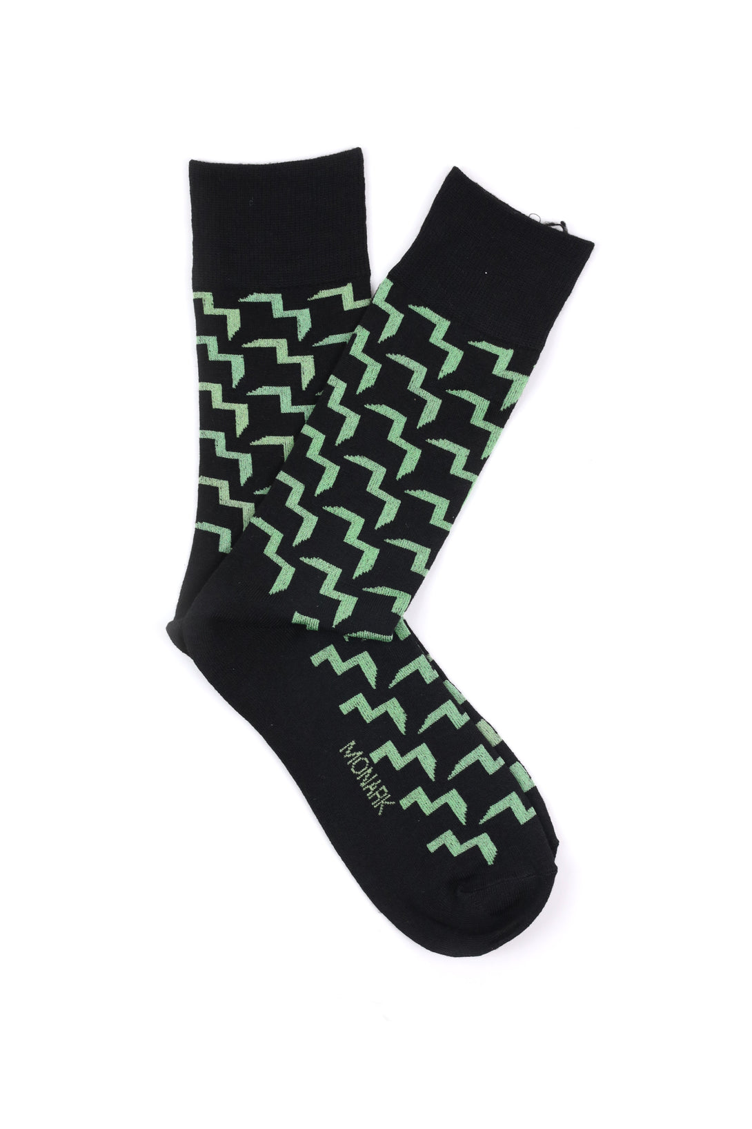 Eye-catching green socks with patterned design to stand out effortlessly.