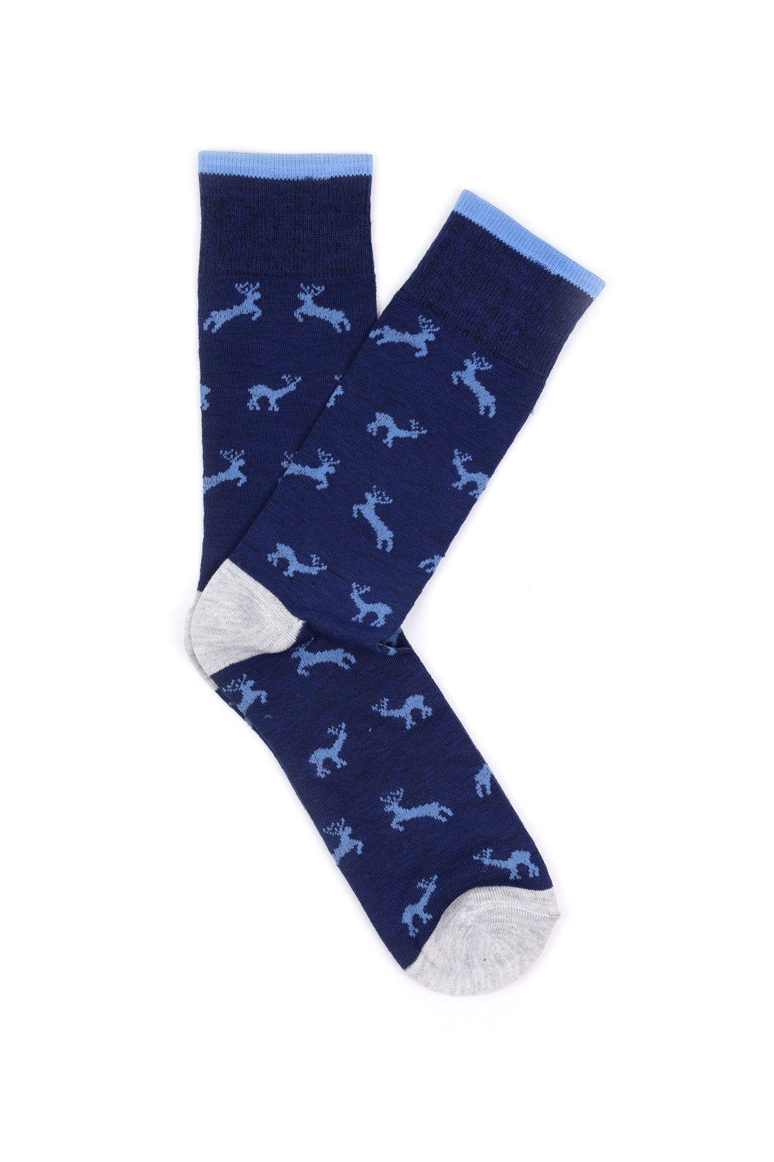 Festive blue socks with reindeer patterns — a playful seasonal must-have.