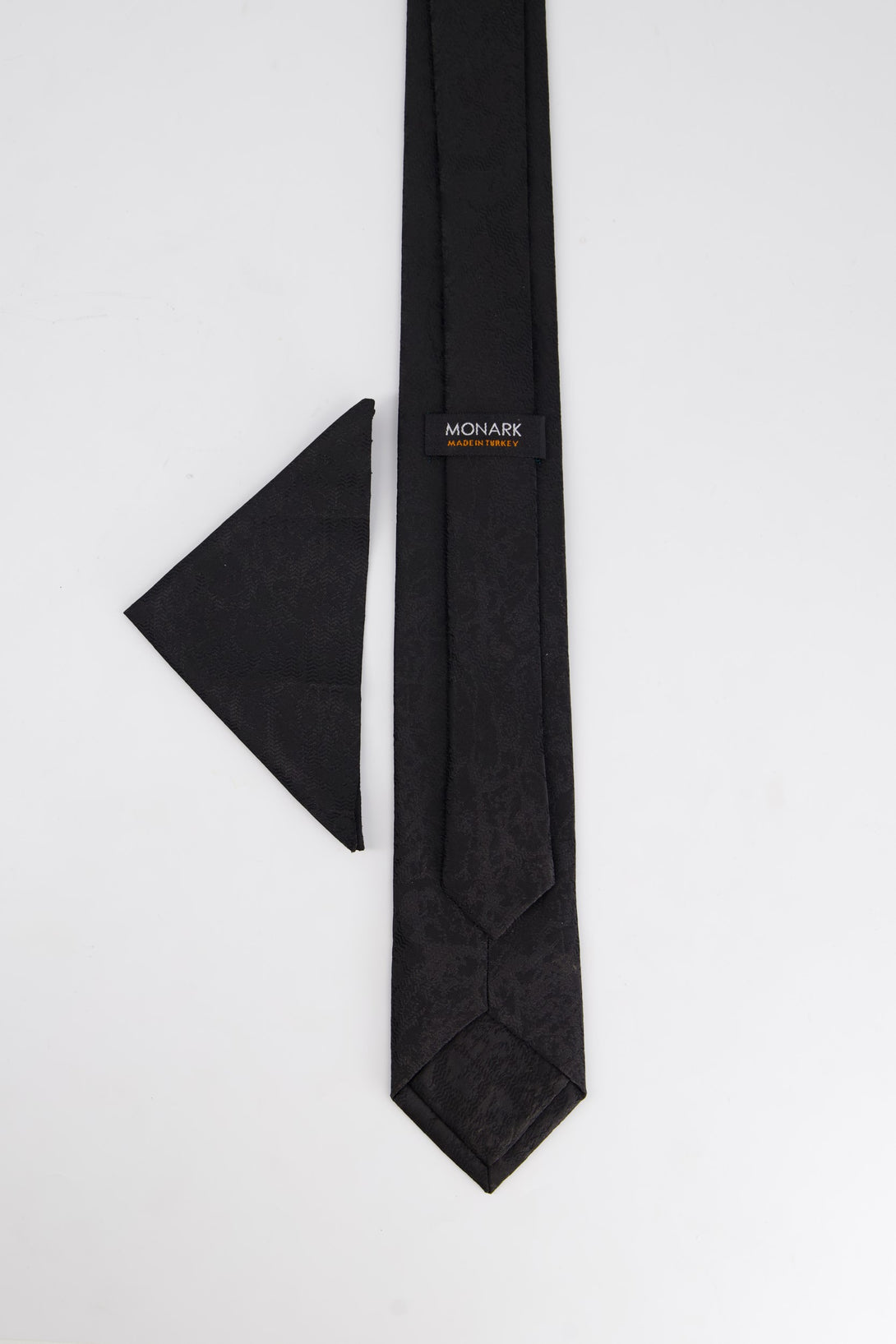A silk tie featuring modern textures along with the pocket square made in Turkey.
