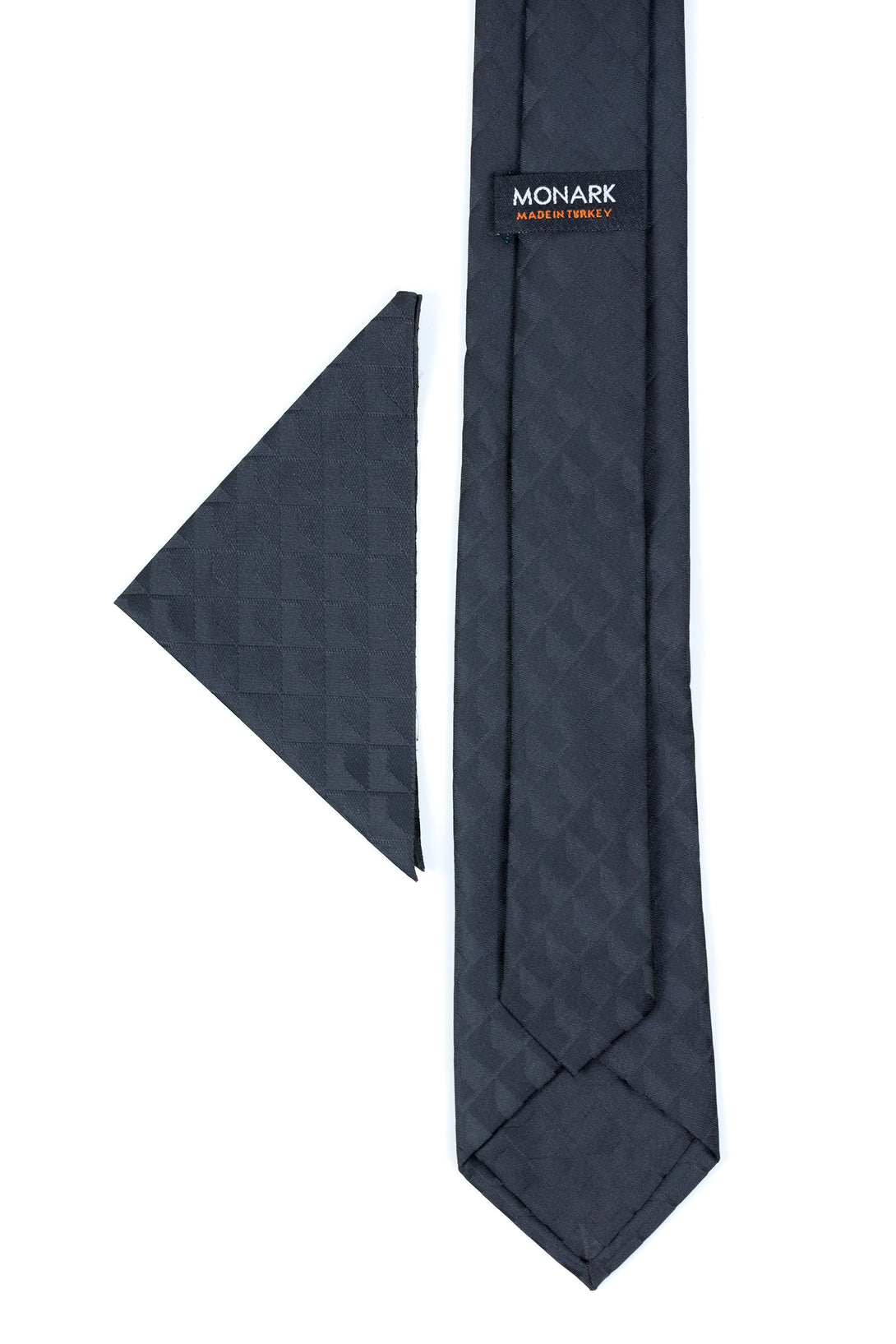 A timeless classic, this black tie features a rich textured weave, perfect for formal events or professional settings
