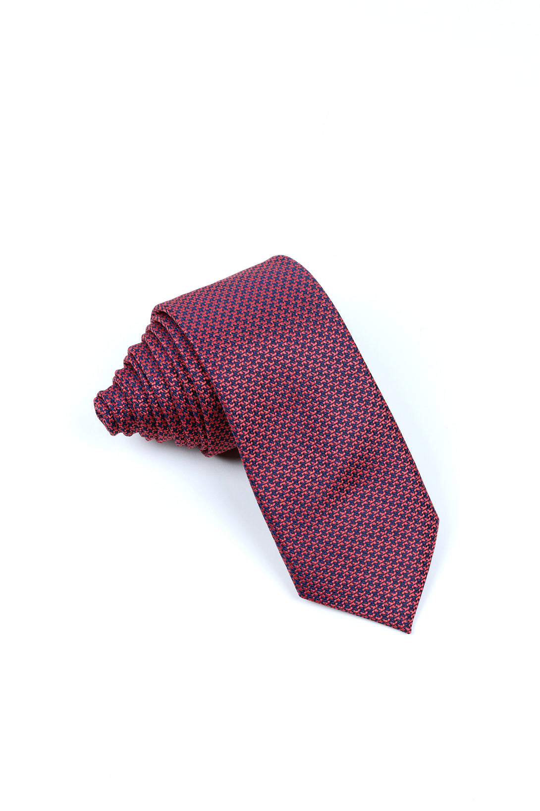Deep and distinguished, this maroon tie features a sleek pattern that enhances any business or evening ensemble.