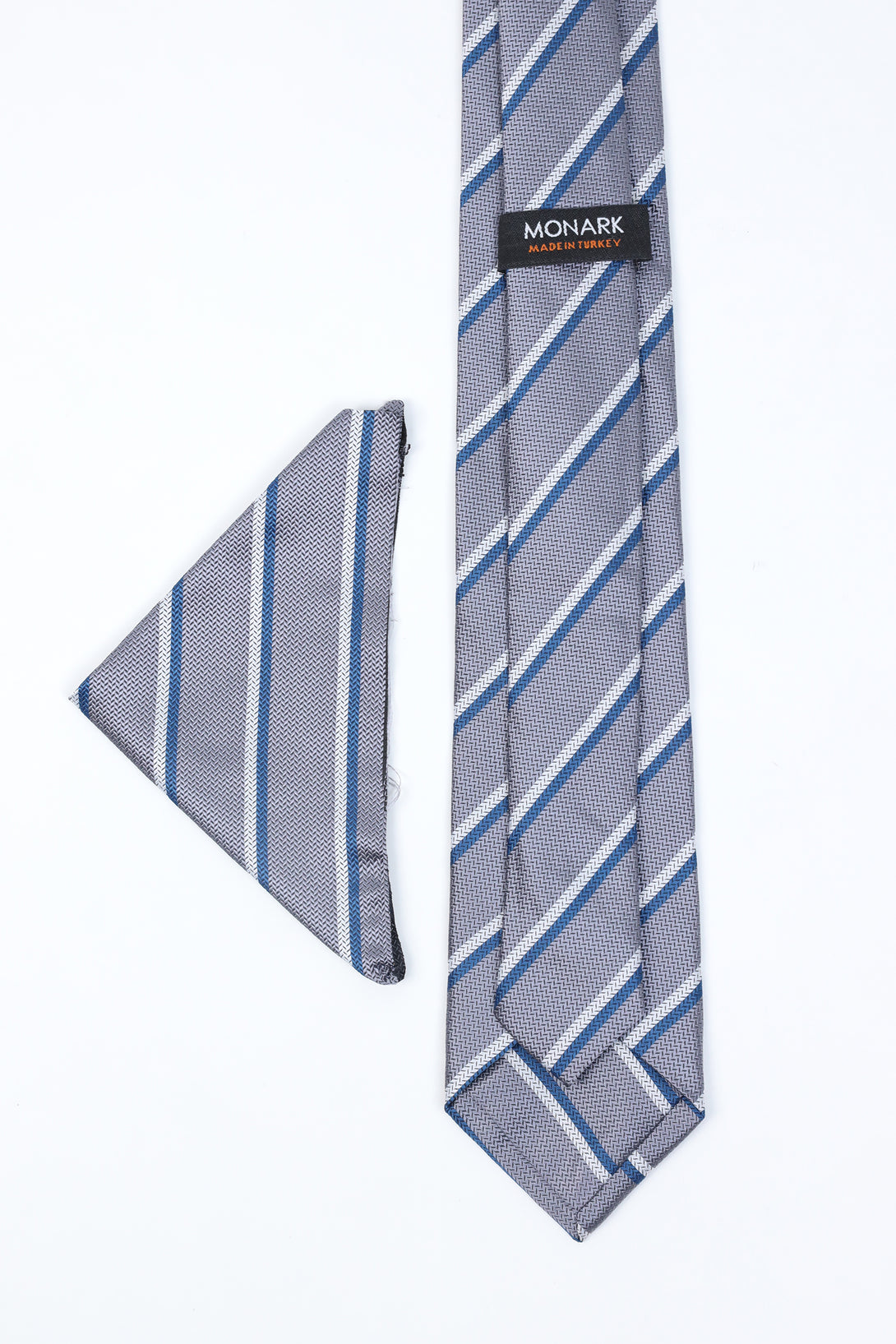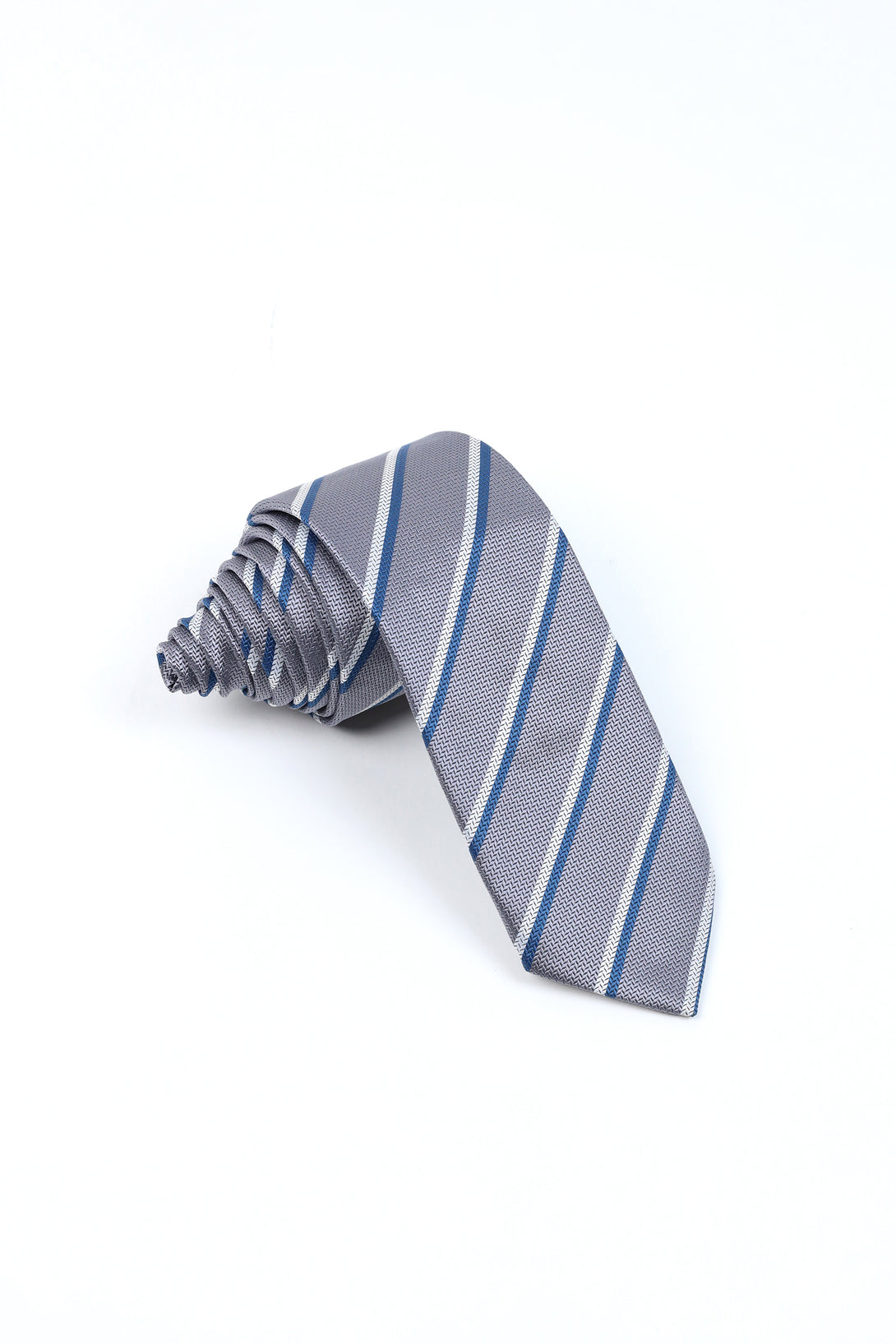 Modern and minimal, this silver-grey tie with sharp stripes delivers a clean, professional edge.