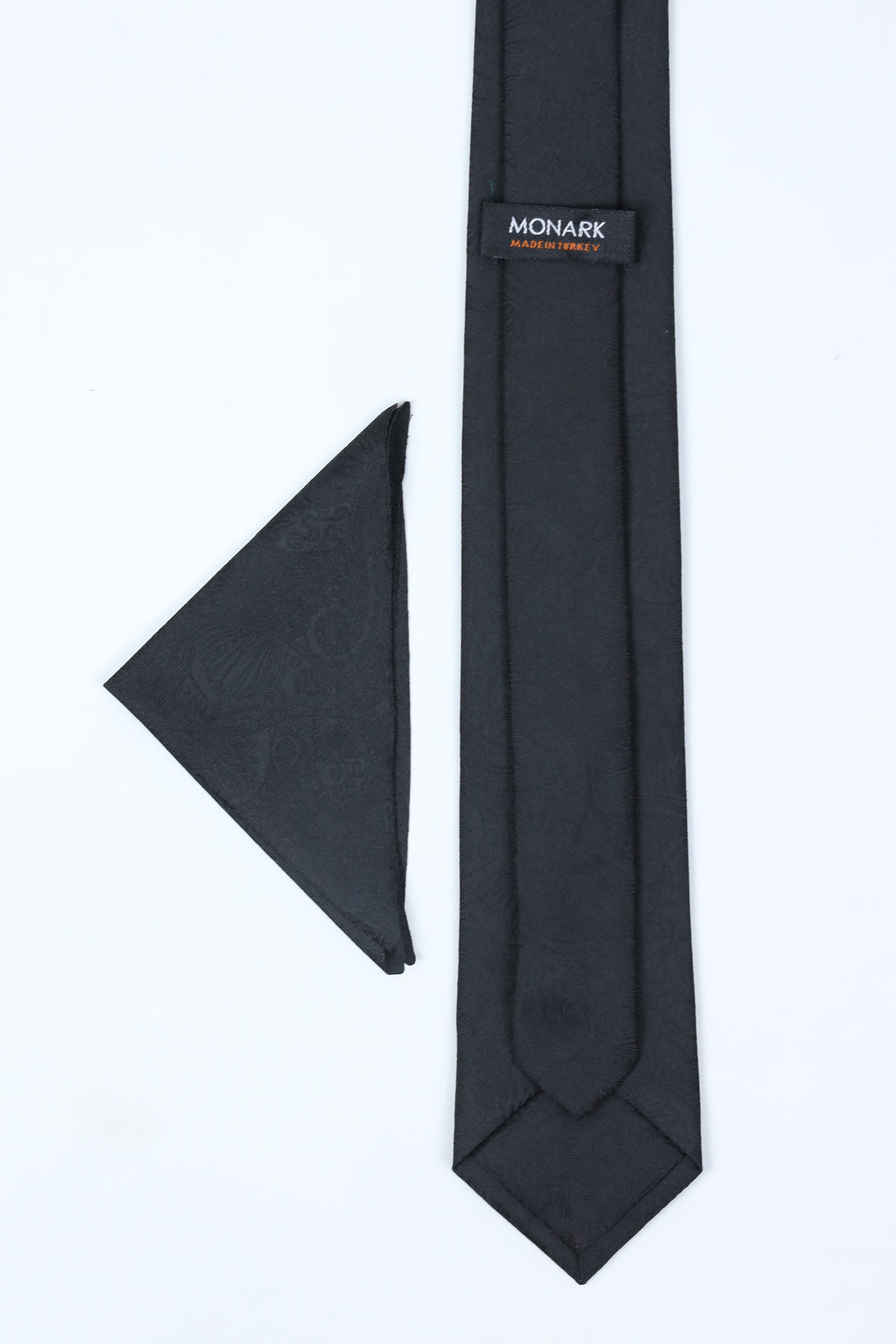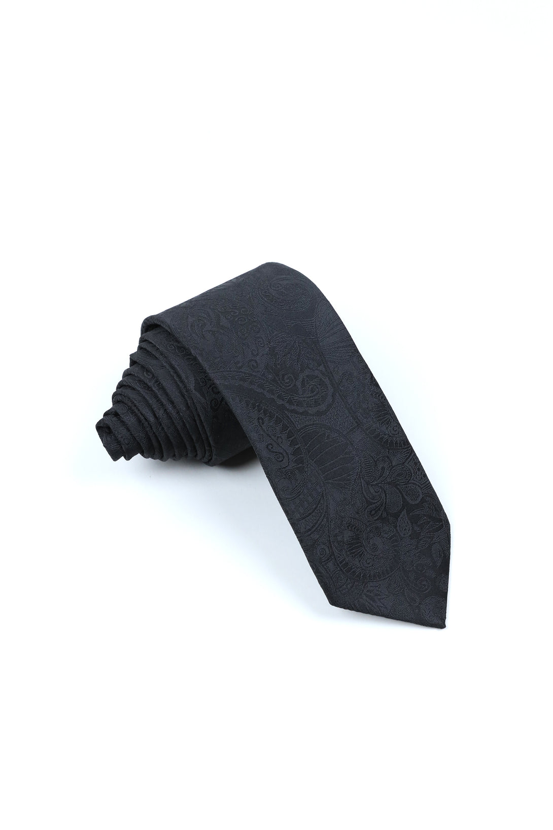 Understated and stylish, this black tie features a woven floral texture, perfect for special occasions or upscale events.