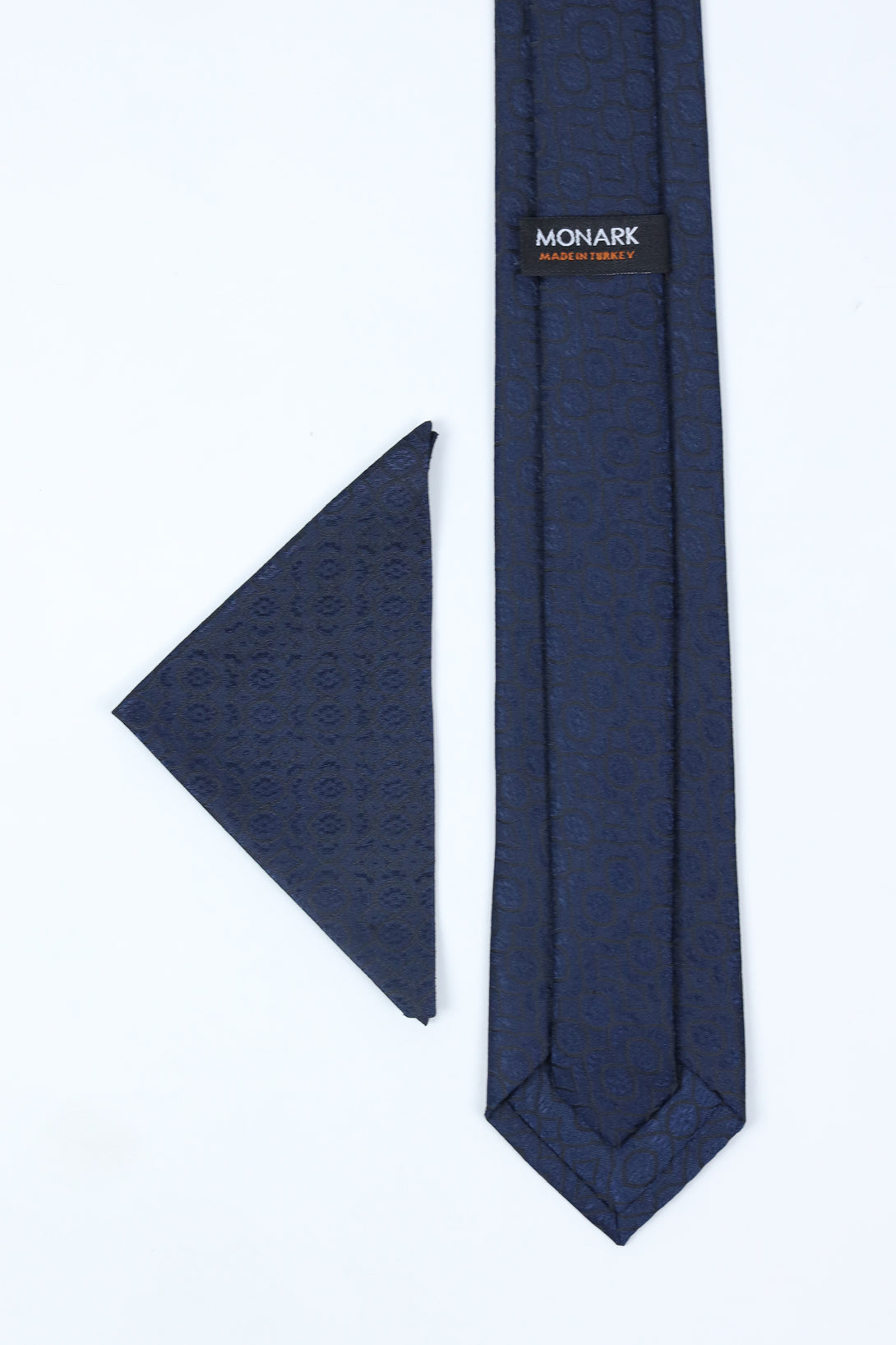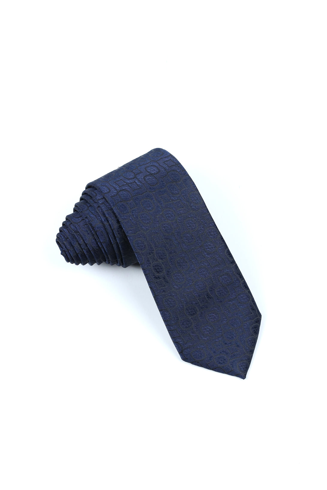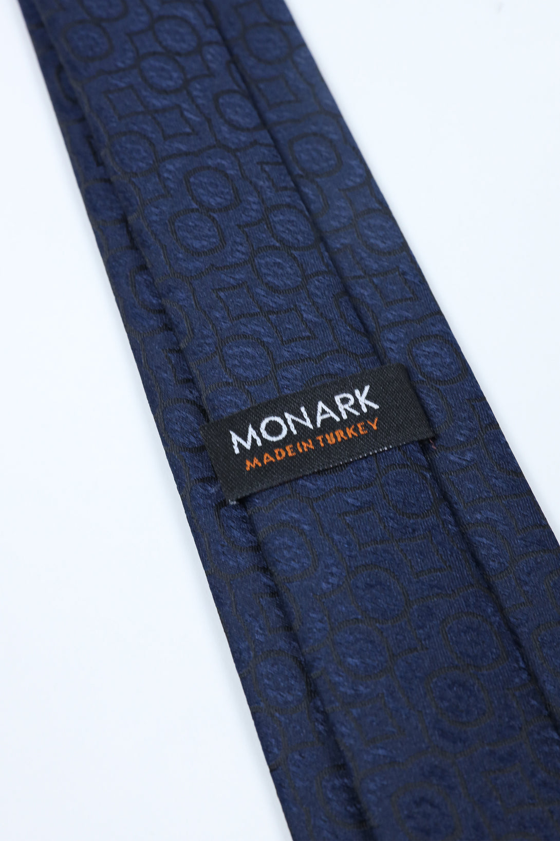 A refined essential, this navy blue tie features a subtle pattern for a touch of character in professional attire.